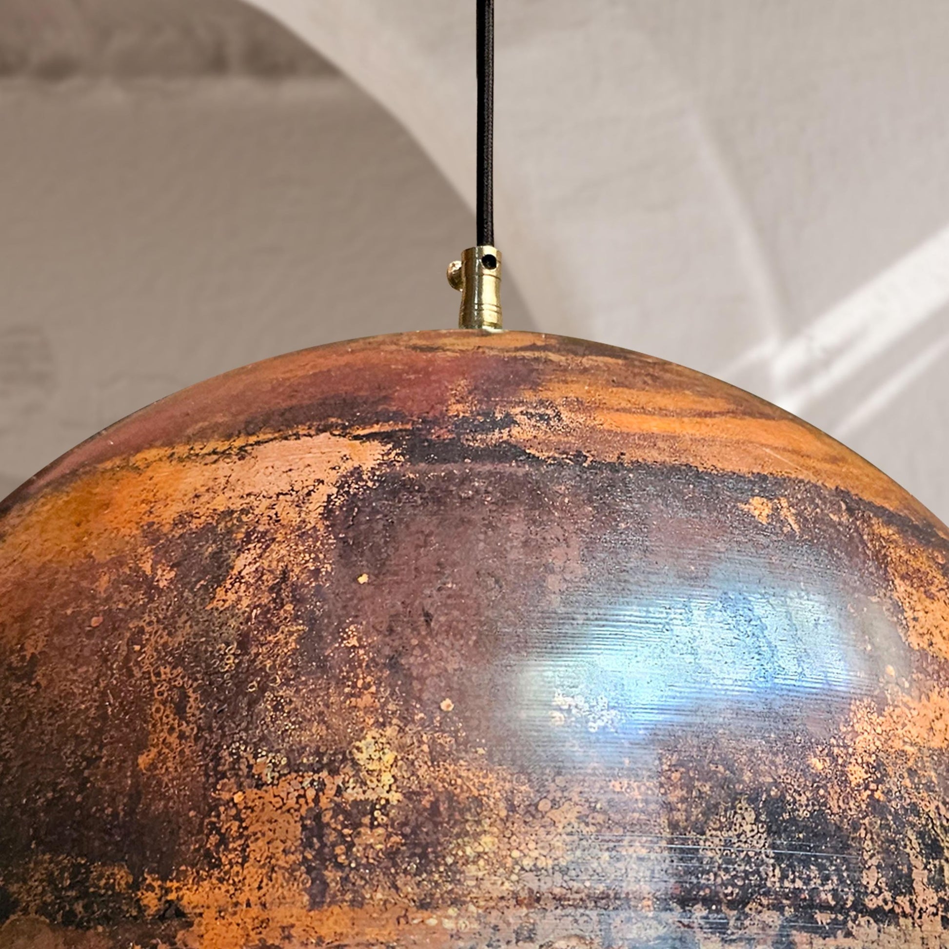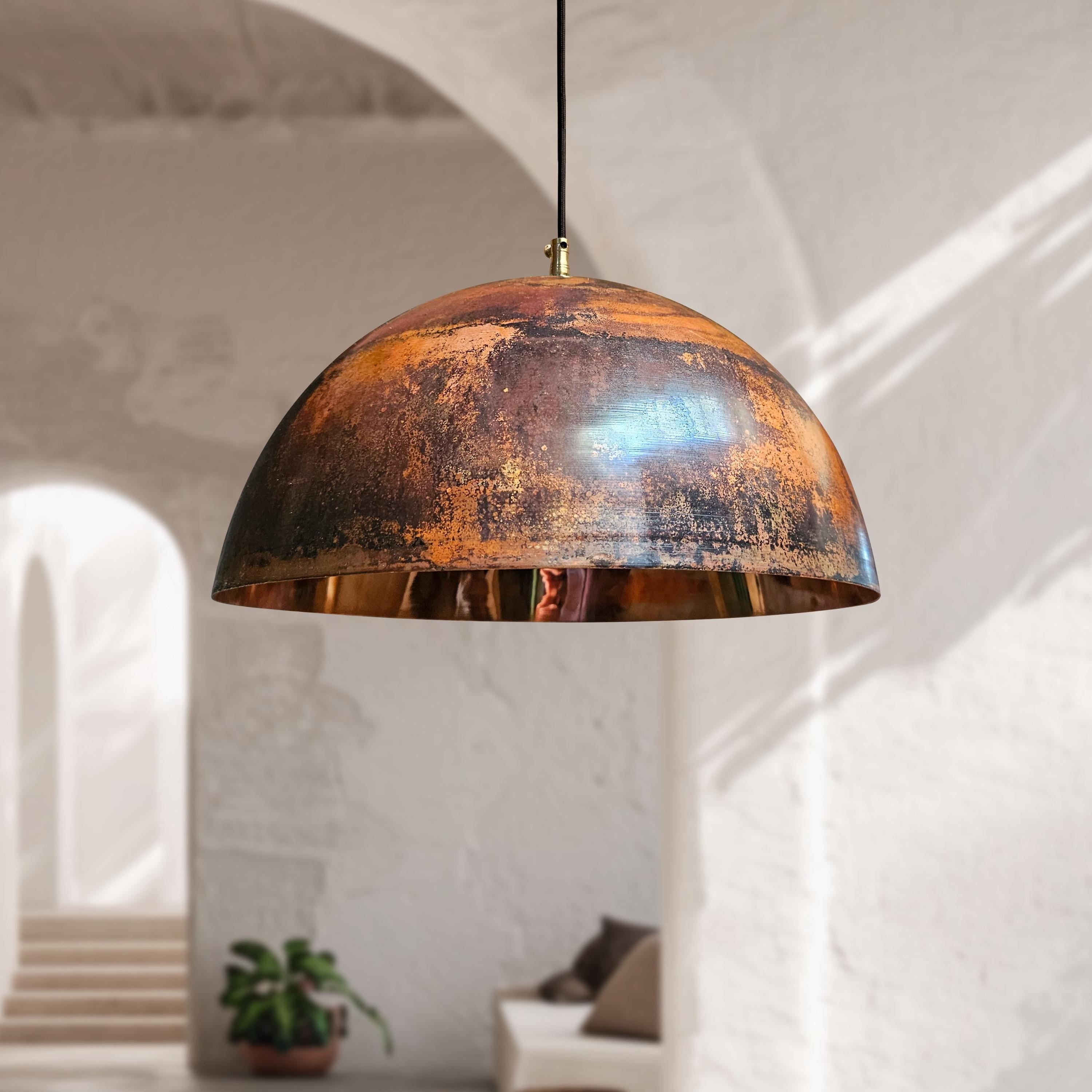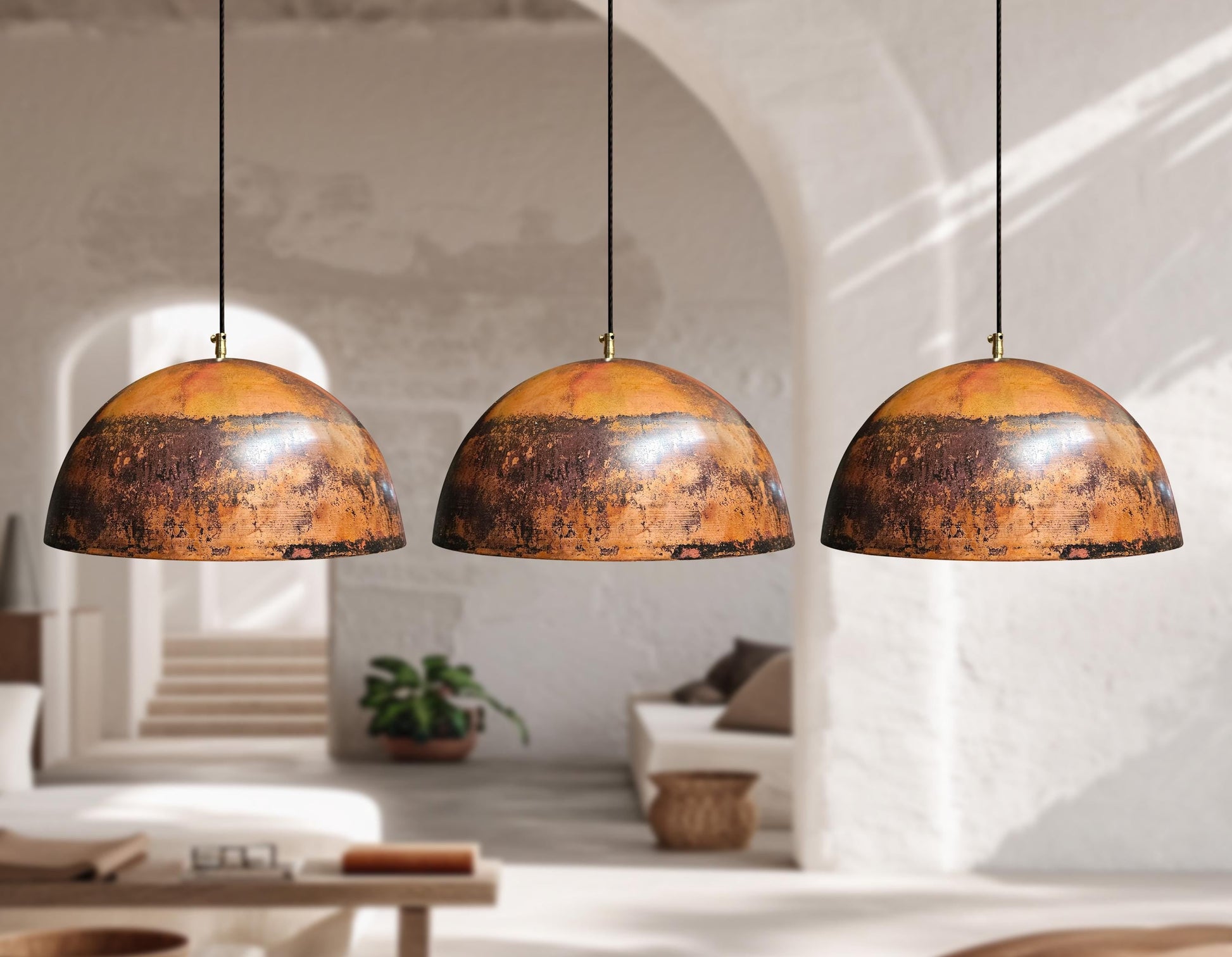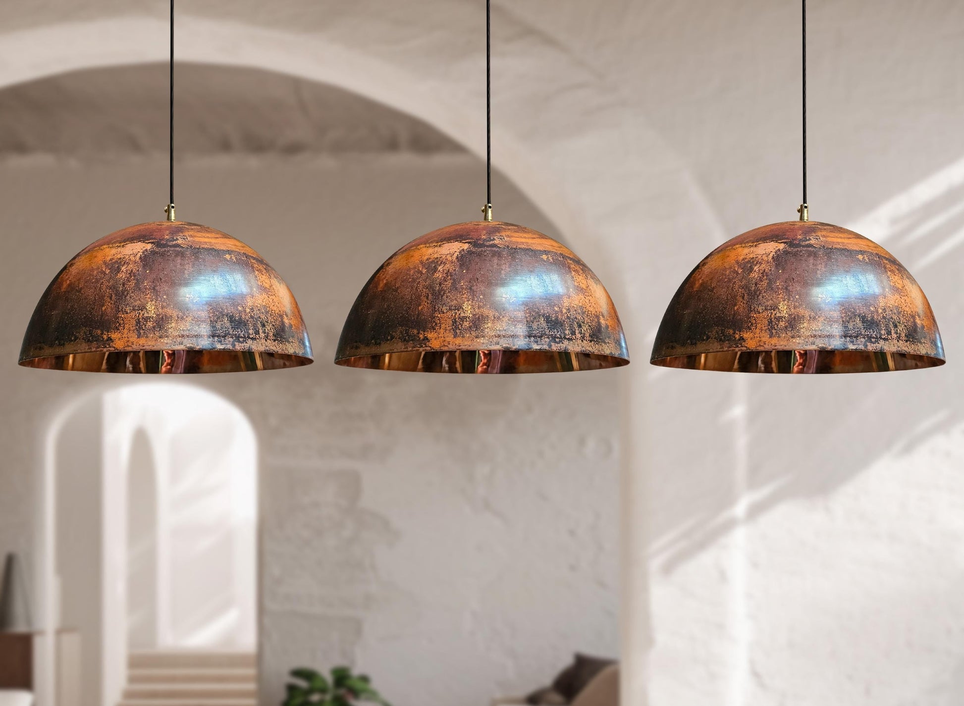 3 Copper Dome Pendant Lights – Oxidized Rustic Kitchen Ceiling Fixtures