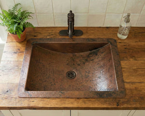 Aged Copper Drop In Sink: Hand Hammered Rectangular Basin with Dark Patina