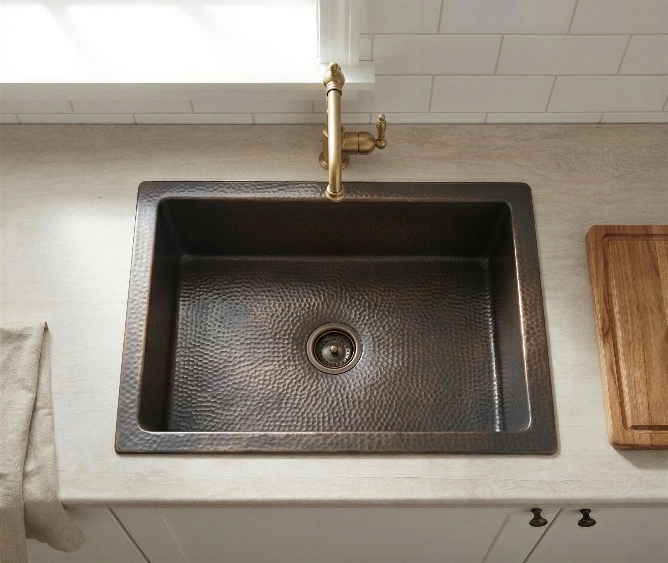 Handmade Bronze Brass Undermount Sink, Rectangular Dark Bronze Basin, Drop In Farmhouse Sink, Handcrafted Oil Rubbed Bronze Sink