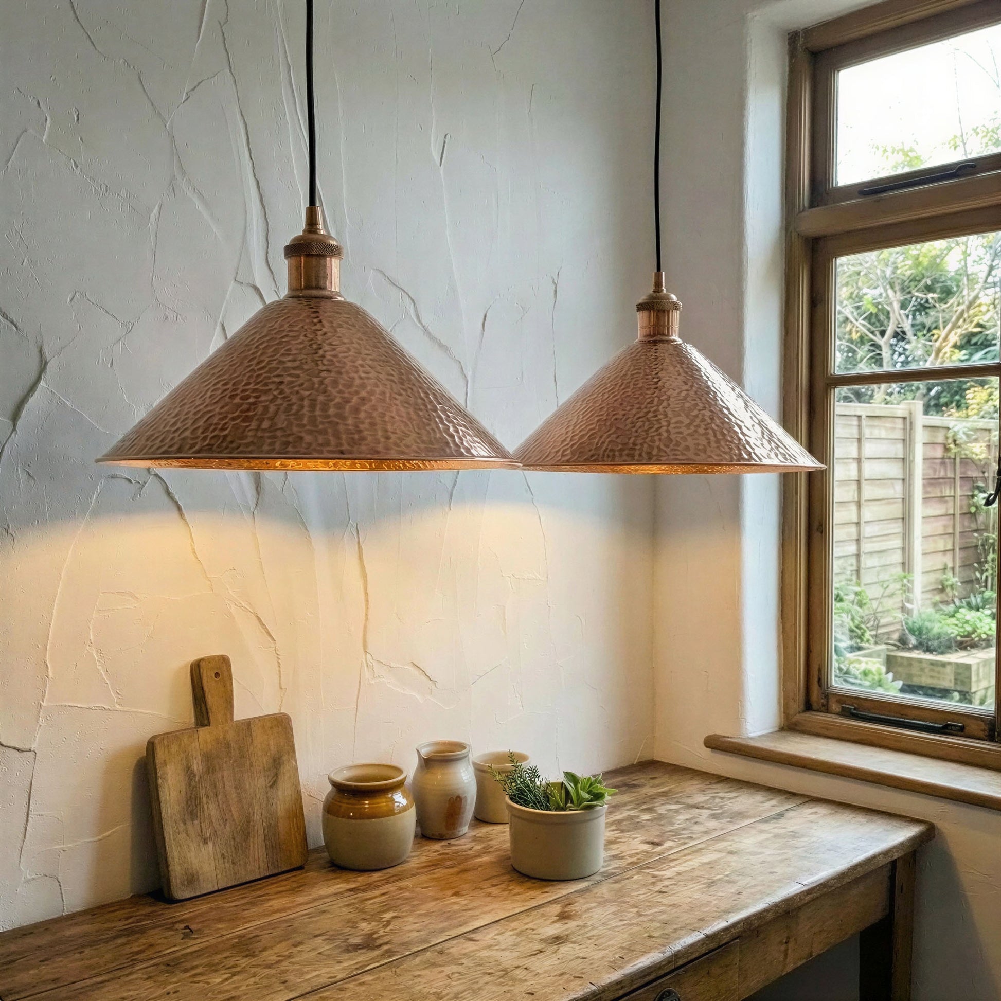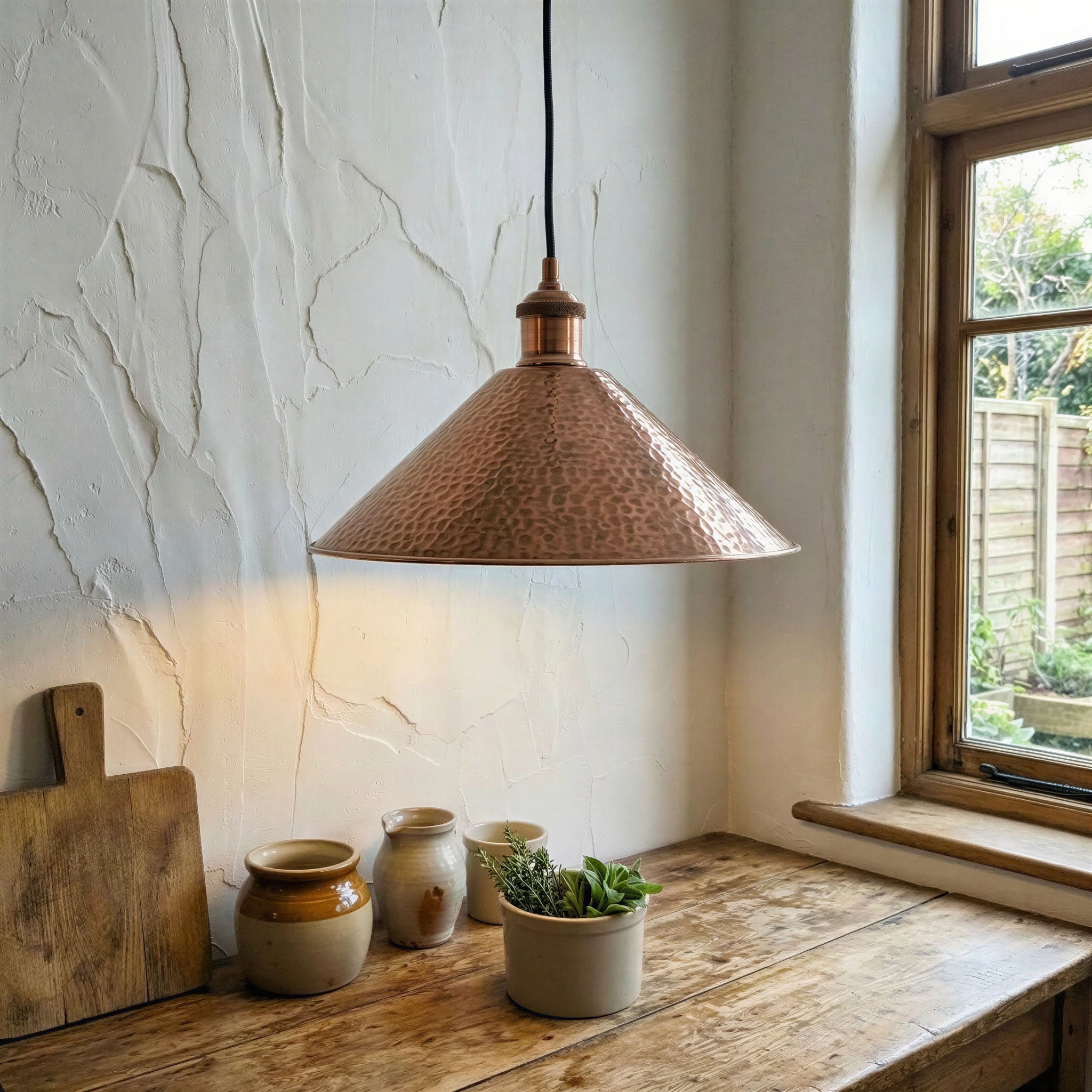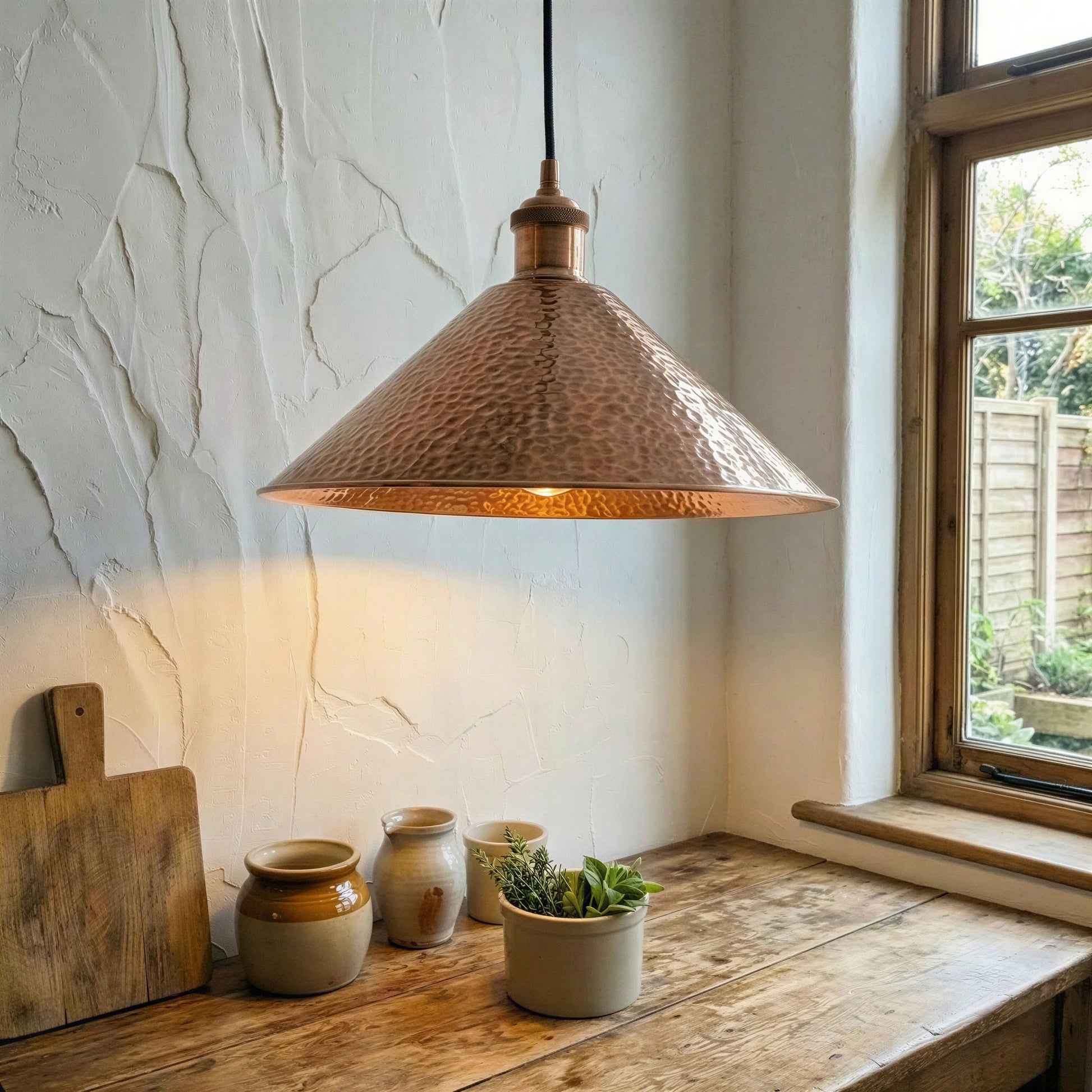 Copper Cone Pendant Light Hammered – Handcrafted Ceiling Lamp for Kitchen Island