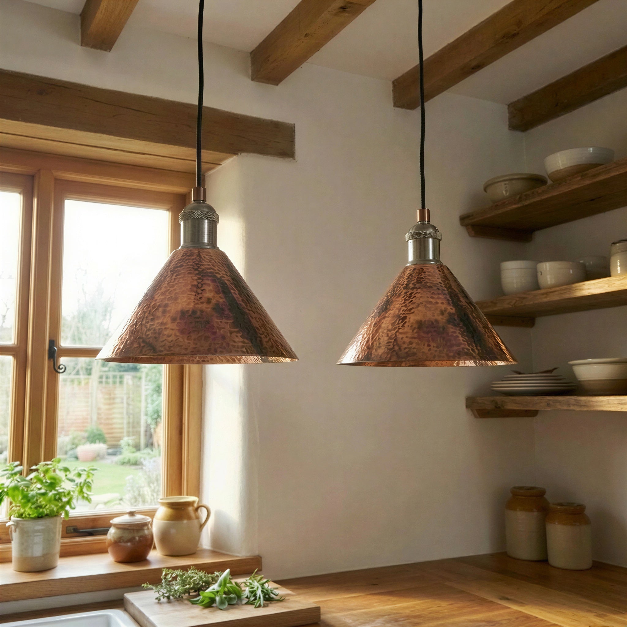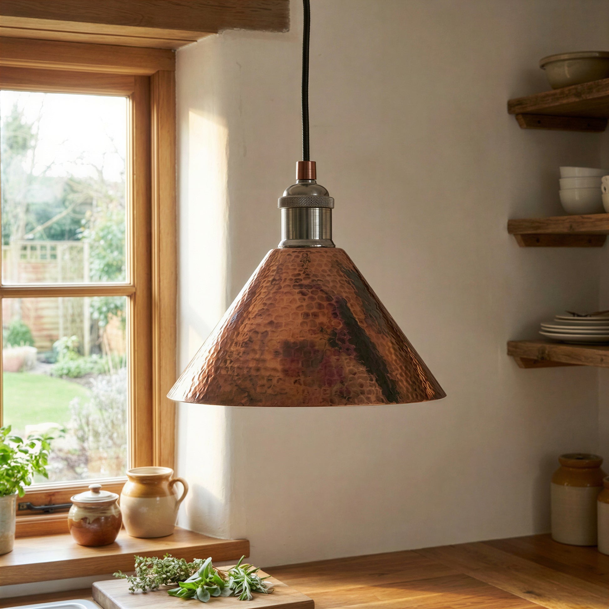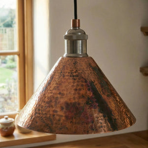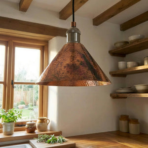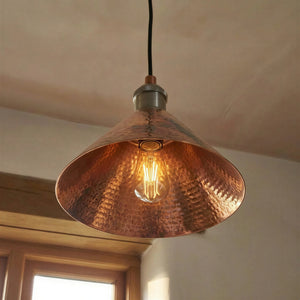 Copper Cone Pendant Light Hammered – Rustic Industrial Ceiling Lamp for Kitchen Island