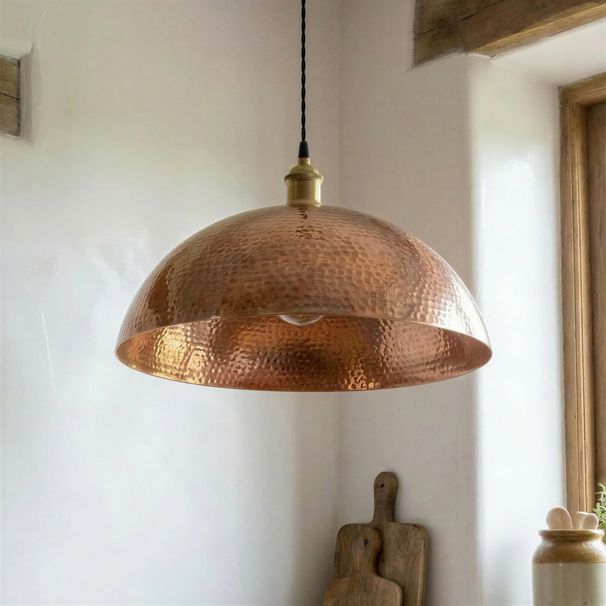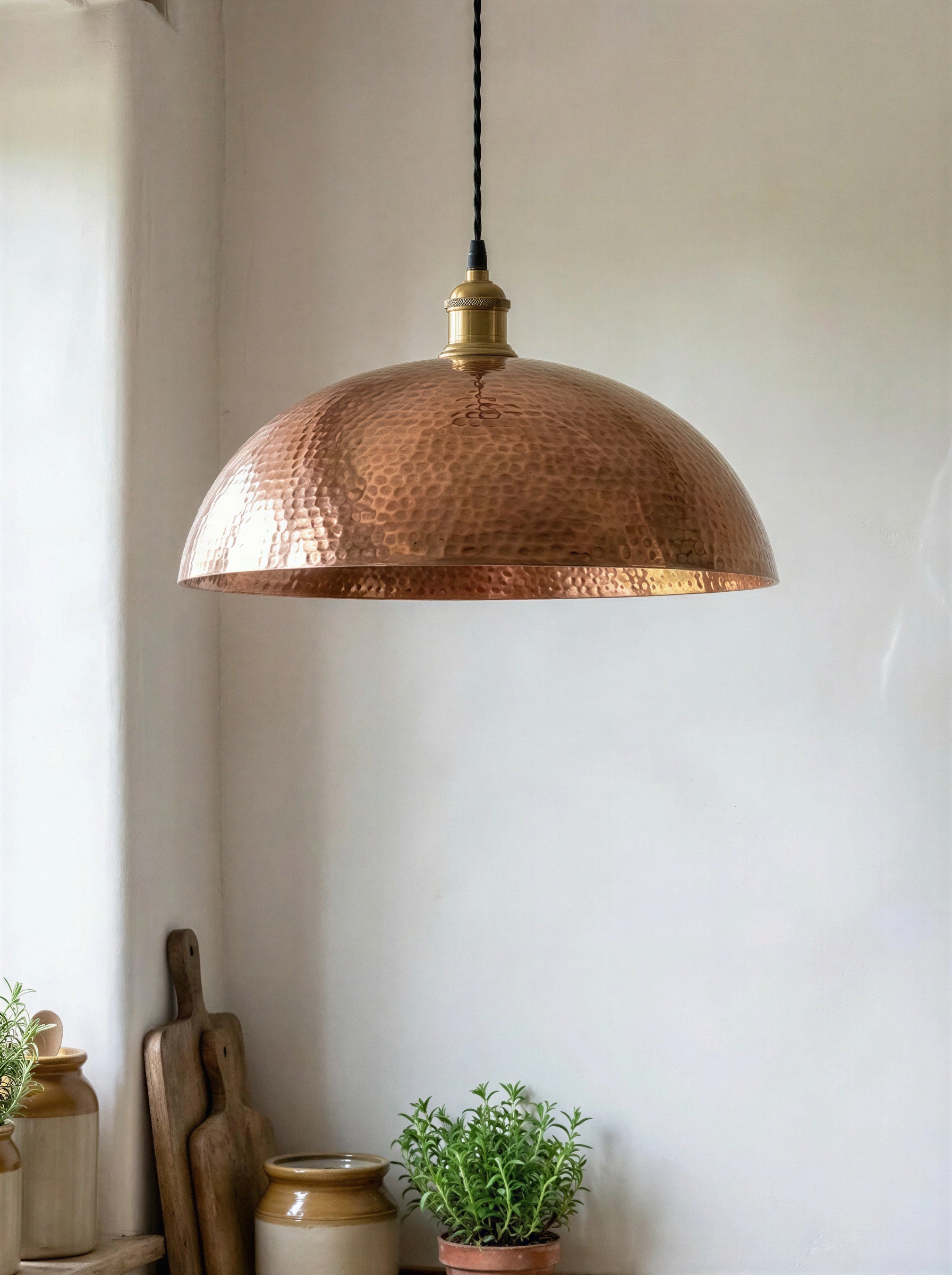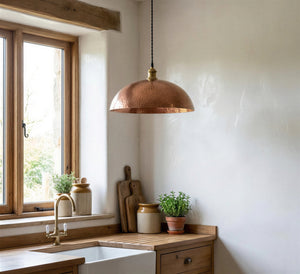 Hand Hammered Copper Pendant Light, Rose Gold Kitchen Island Lamp, Rustic Industrial Dome, Textured Metal Shade, Farmhouse Ceiling Fixture