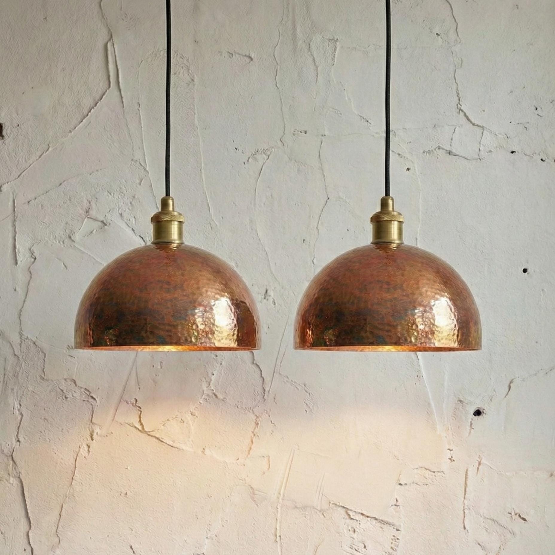 Hammered Aged Copper Kitchen Island Lighting, Vintage Farmhouse Dome Style Fixture