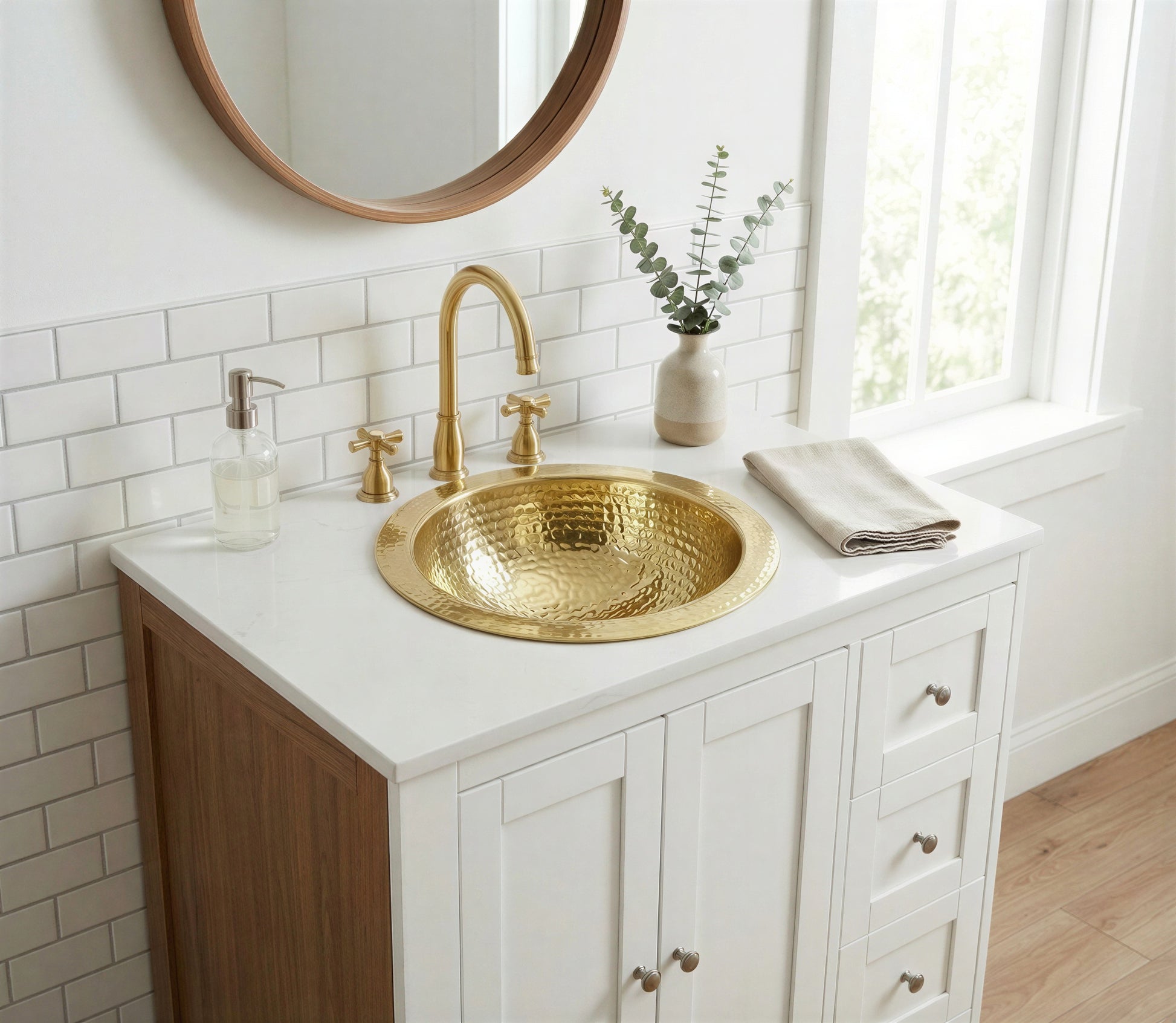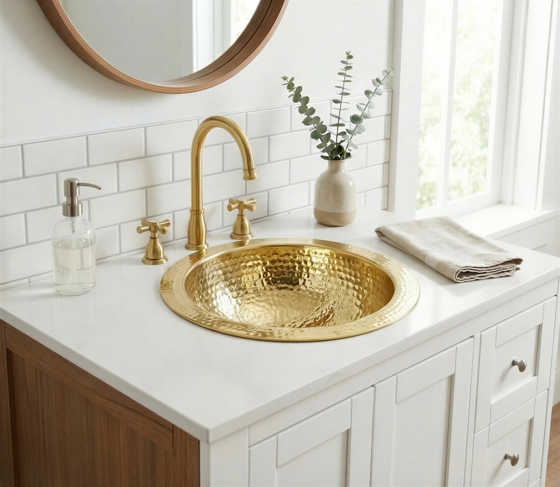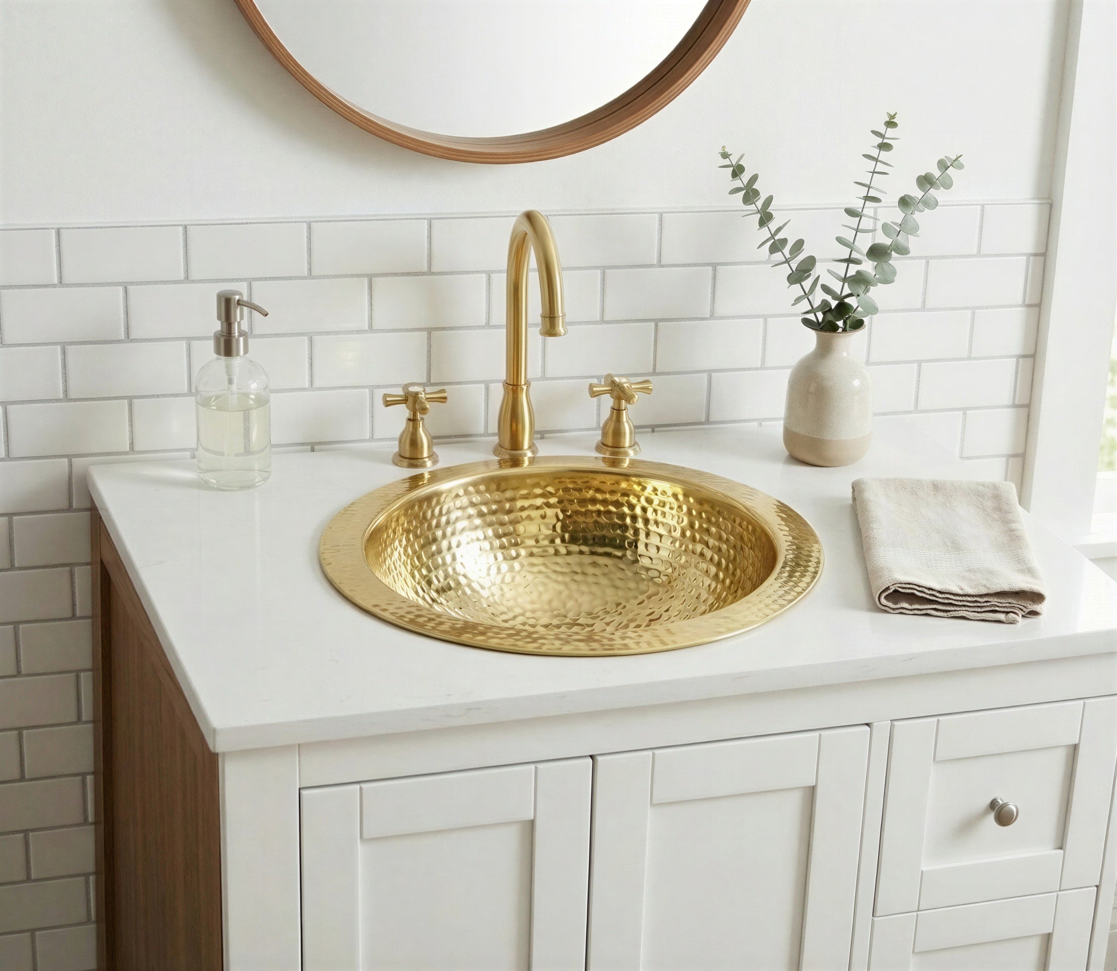 Hammered Brass Round Sink, Gold Drop In Bathroom Vanity Sink, Handcrafted Gold Bathroom Sink