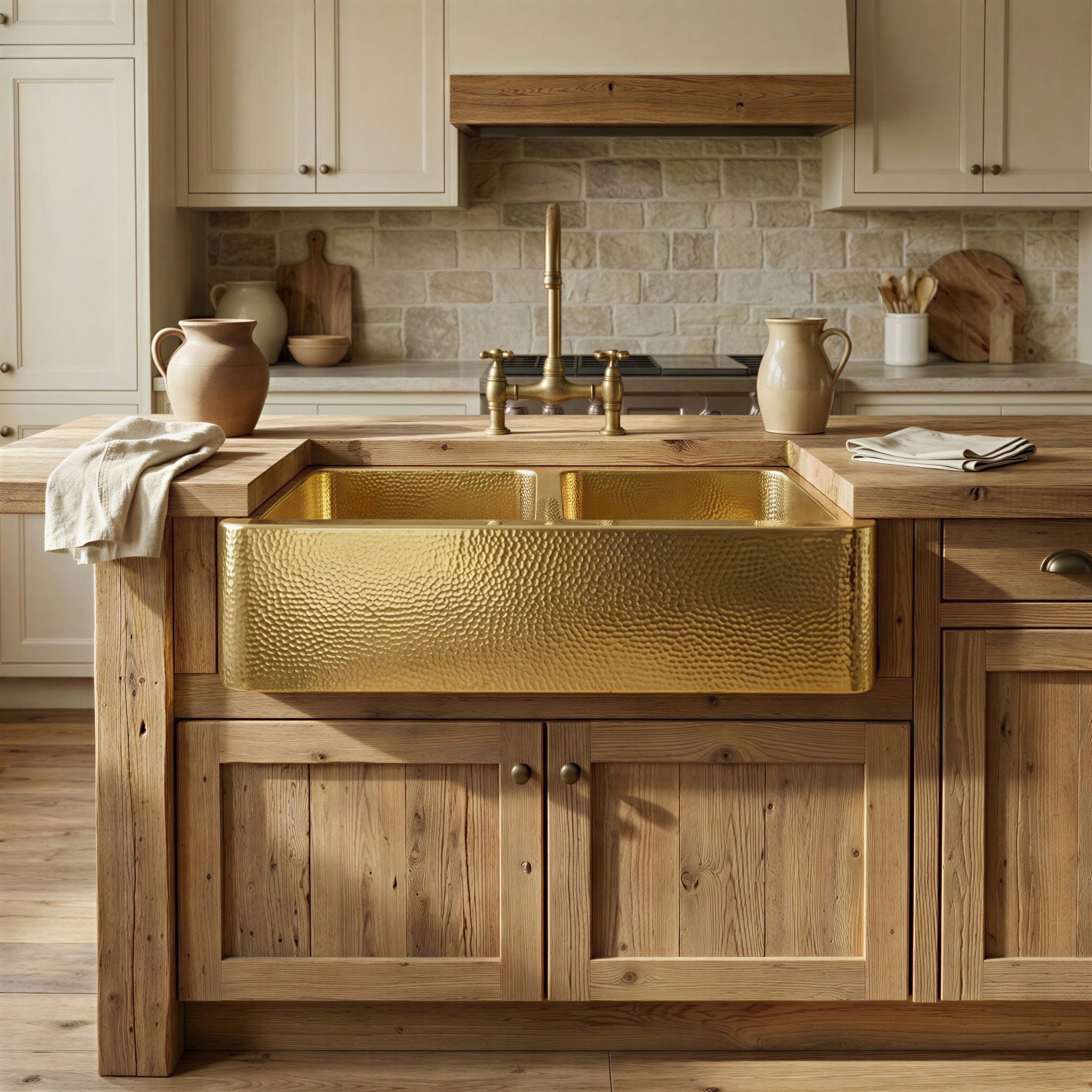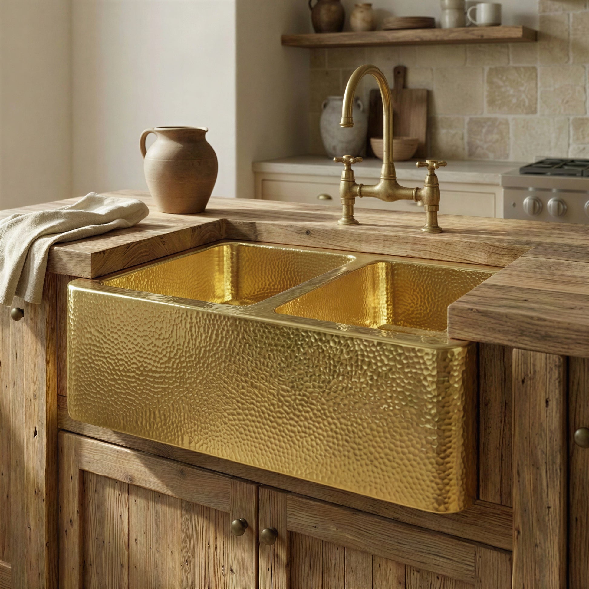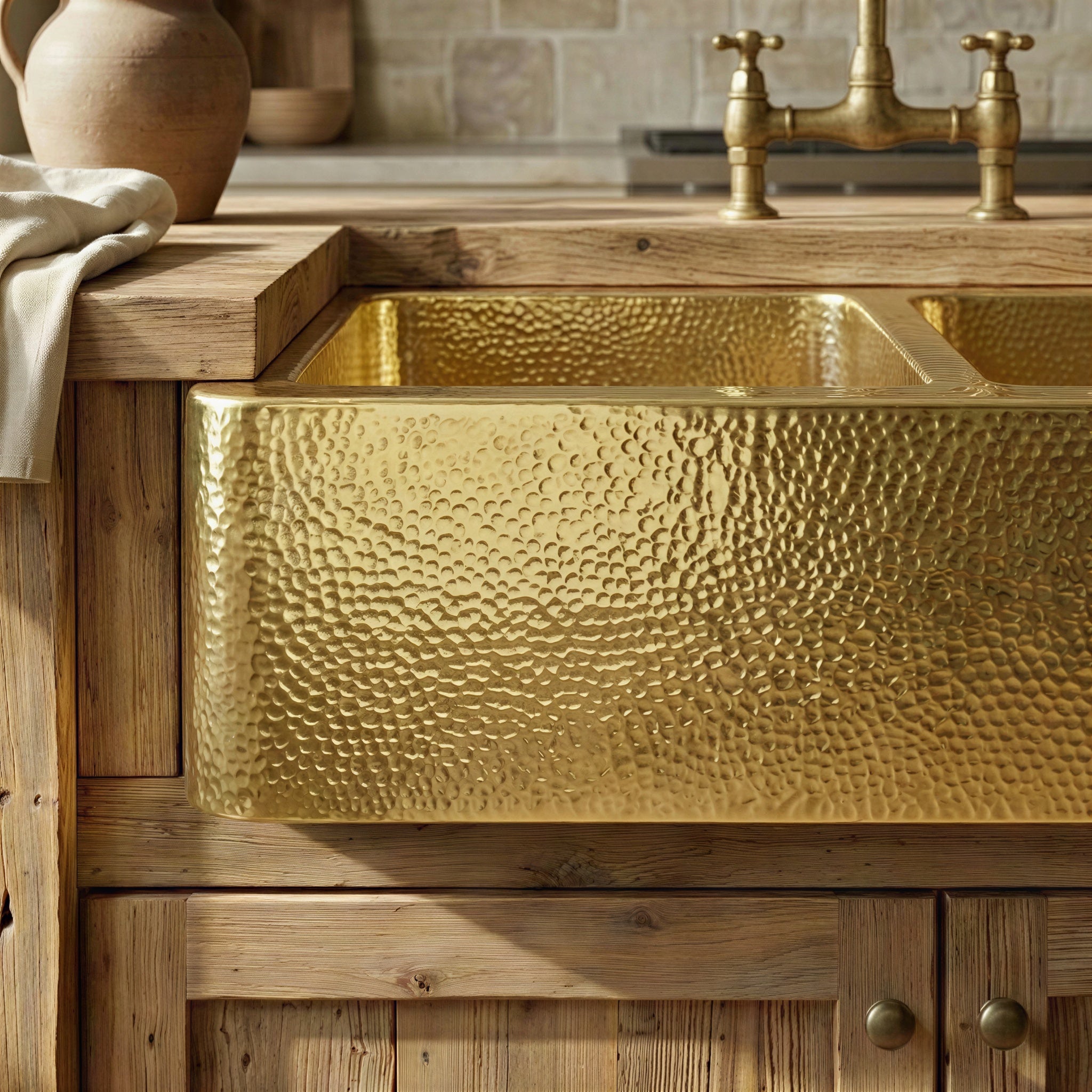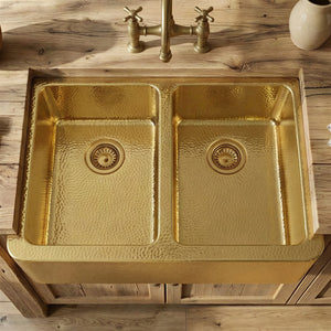 Hammered Brass Farmhouse Sink, Apron Front Double Bowl, Gold Kitchen Basin, Real Brass Farmhouse Apron Sink, Unlacquered Brass Kitchen Sink