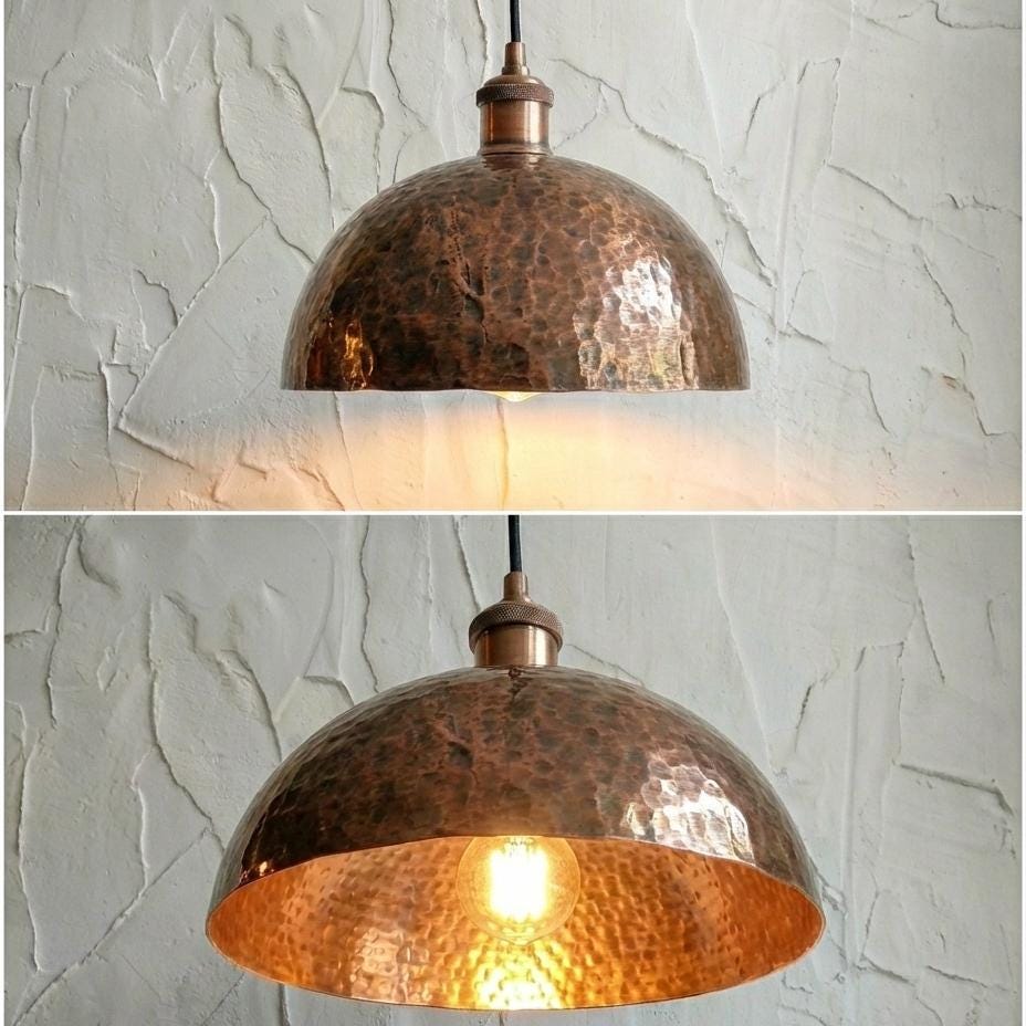 Hand Hammered Copper Kitchen Island Lamp, Textured Farmhouse Metal Ceiling Light Fixture