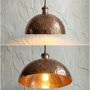 Hand Hammered Copper Pendant Light, Rose Gold Kitchen Island Lamp, Rustic Industrial Dome, Textured Metal Shade, Farmhouse Ceiling Fixture