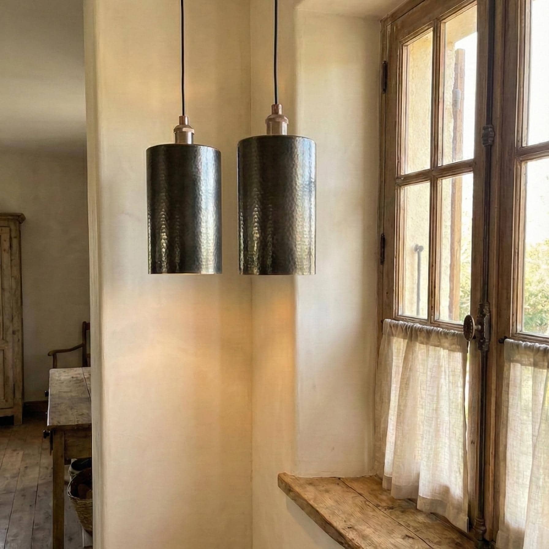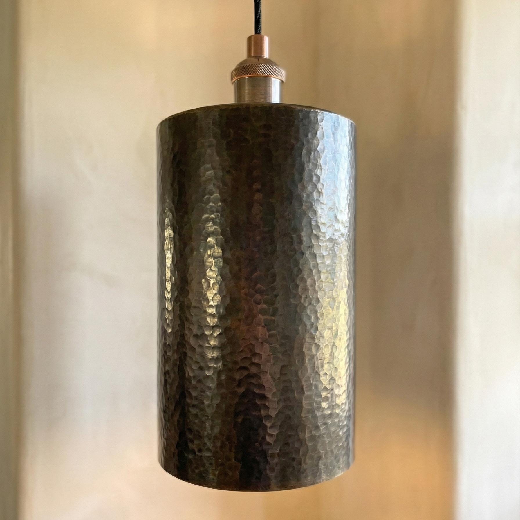 Handcrafted Brass Tube Light, Tall Hammered Pendant for Dining Room, Solid Brass Minimalist Cylinder Downlight