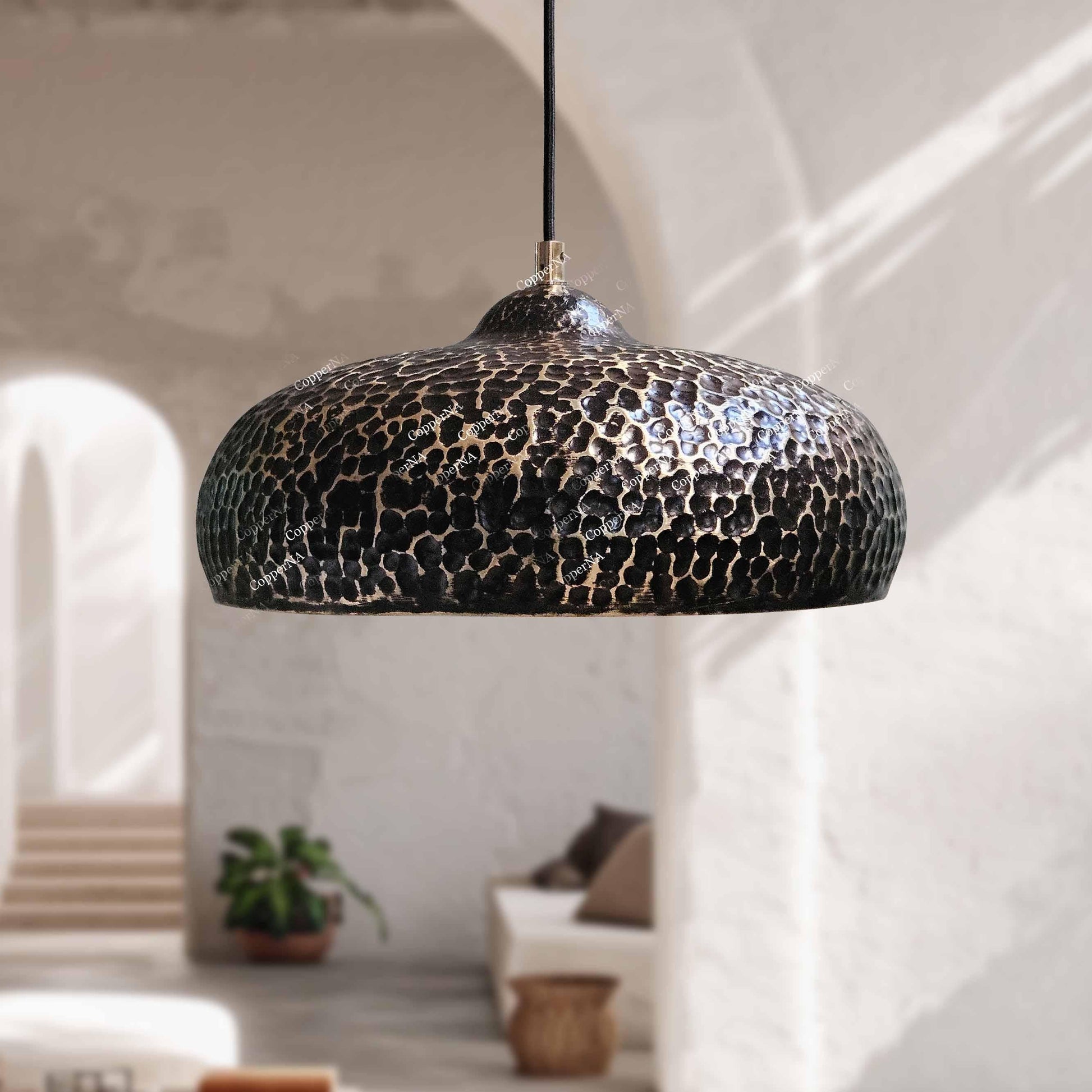 Handmade Brass Pendant Light – Hammered Dome Farmhouse Ceiling Fixture