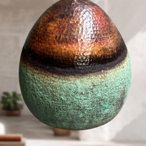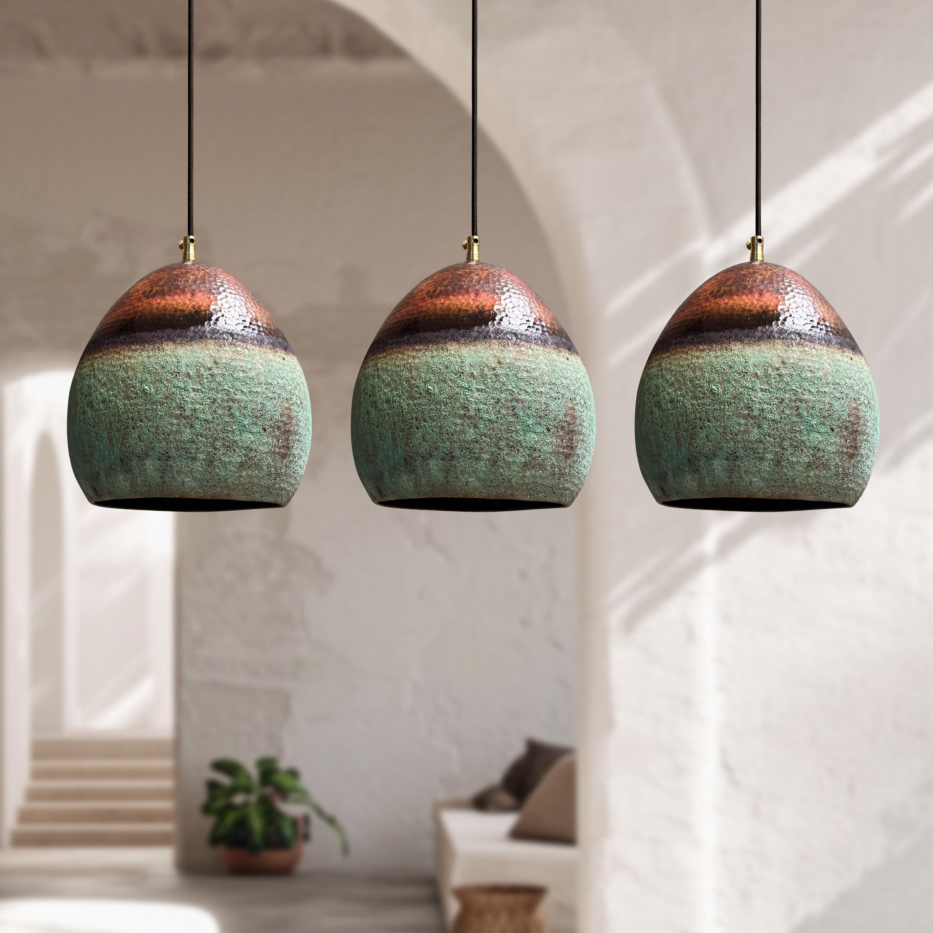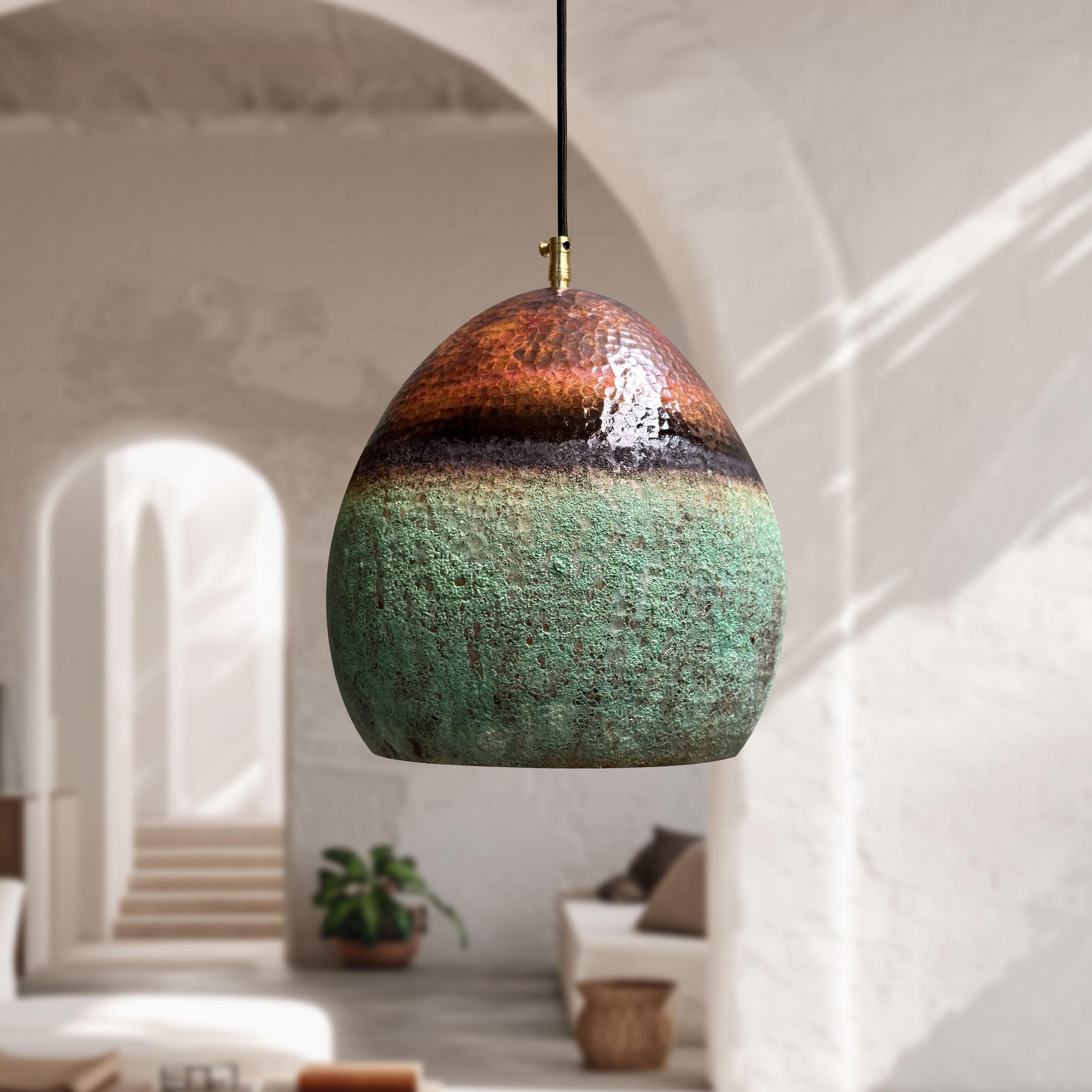 Oxidized Copper Pendant Light, Green Patina Farmhouse Light Fixture, Handmade Copper Ceiling Light
