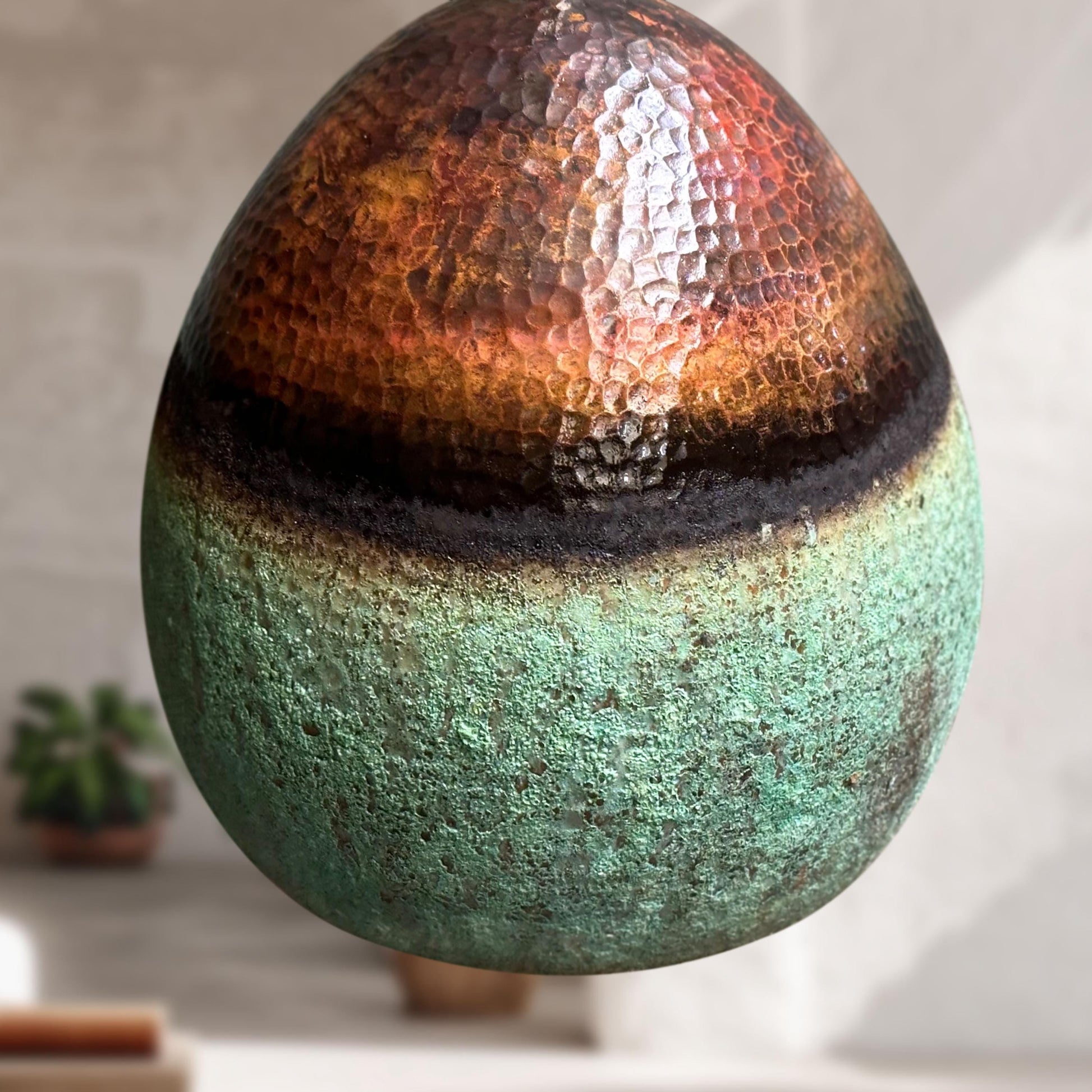 Handmade Oxidized Copper Pendant Light – Green Patina Vintage Farmhouse Kitchen Fixture