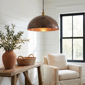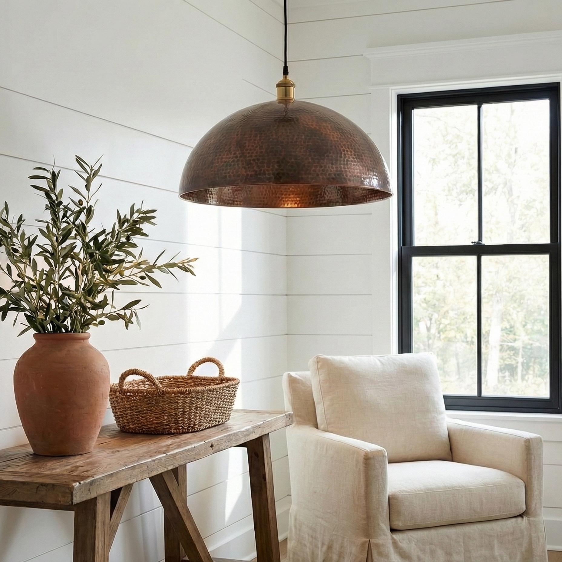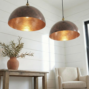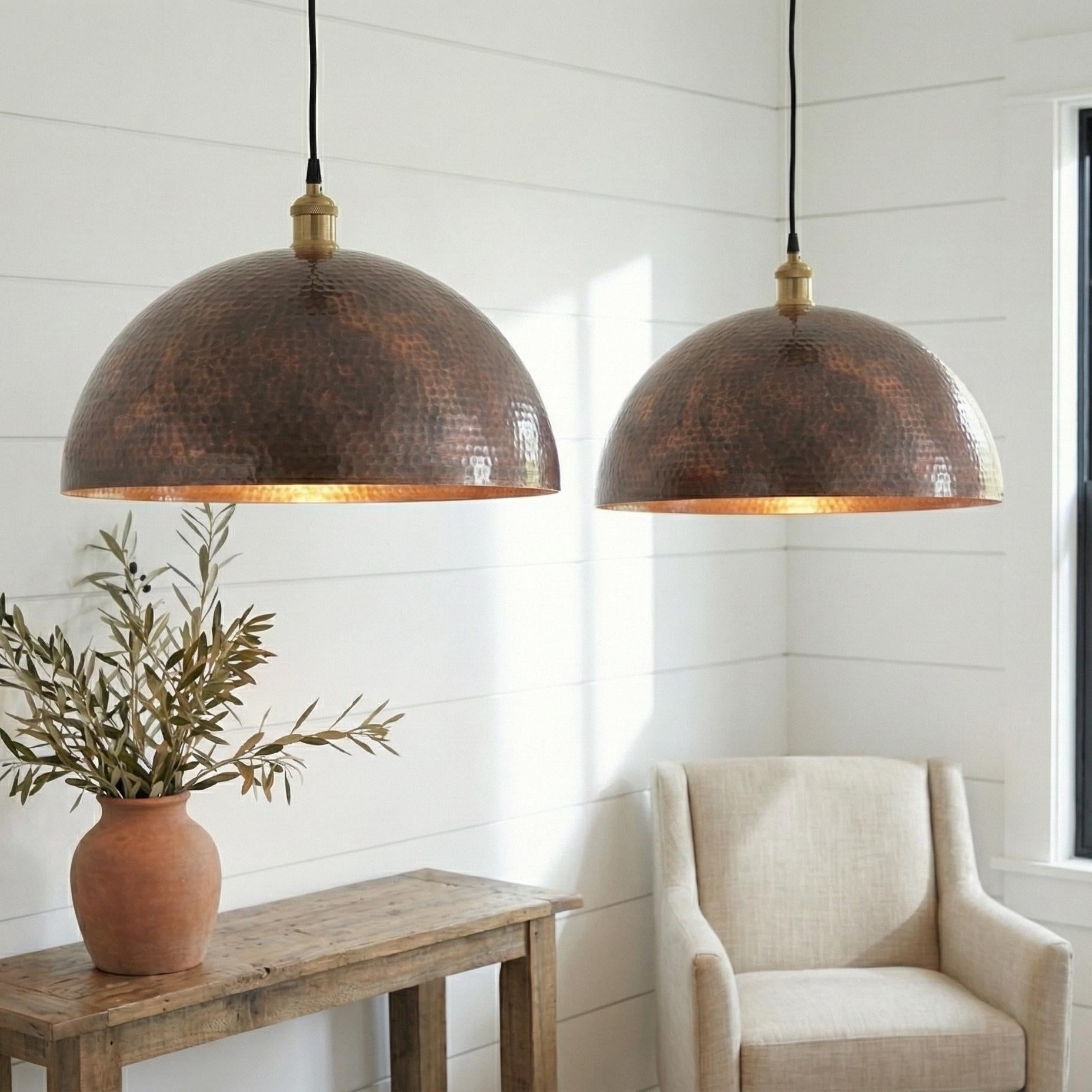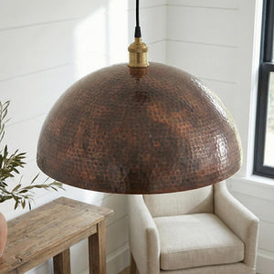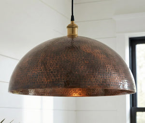 Round Aged Copper Kitchen Island Light, Hand Hammered Pendant, Textured Metal Lamp