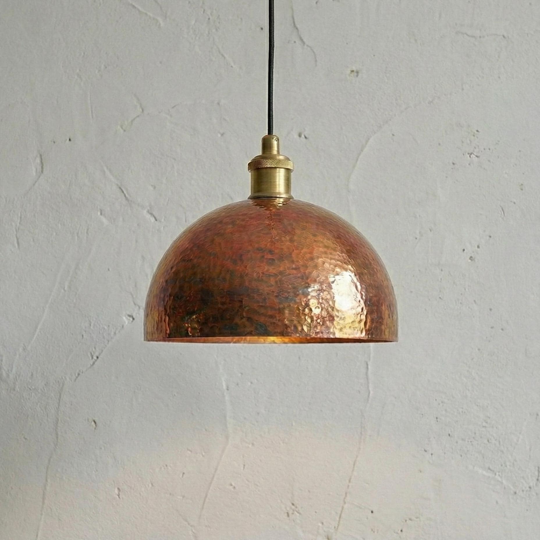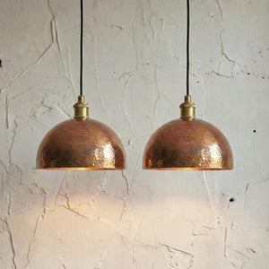 Set of 2 Hand Hammered Copper Pendant Light, Set of Two Rustic Aged Copper Lighting, Industrial Dome Hanging Lamp for Kitchen Island