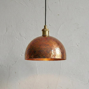 Set of 2 Hand Hammered Copper Pendant Light | Set of Two Rustic Aged Copper Lighting