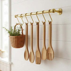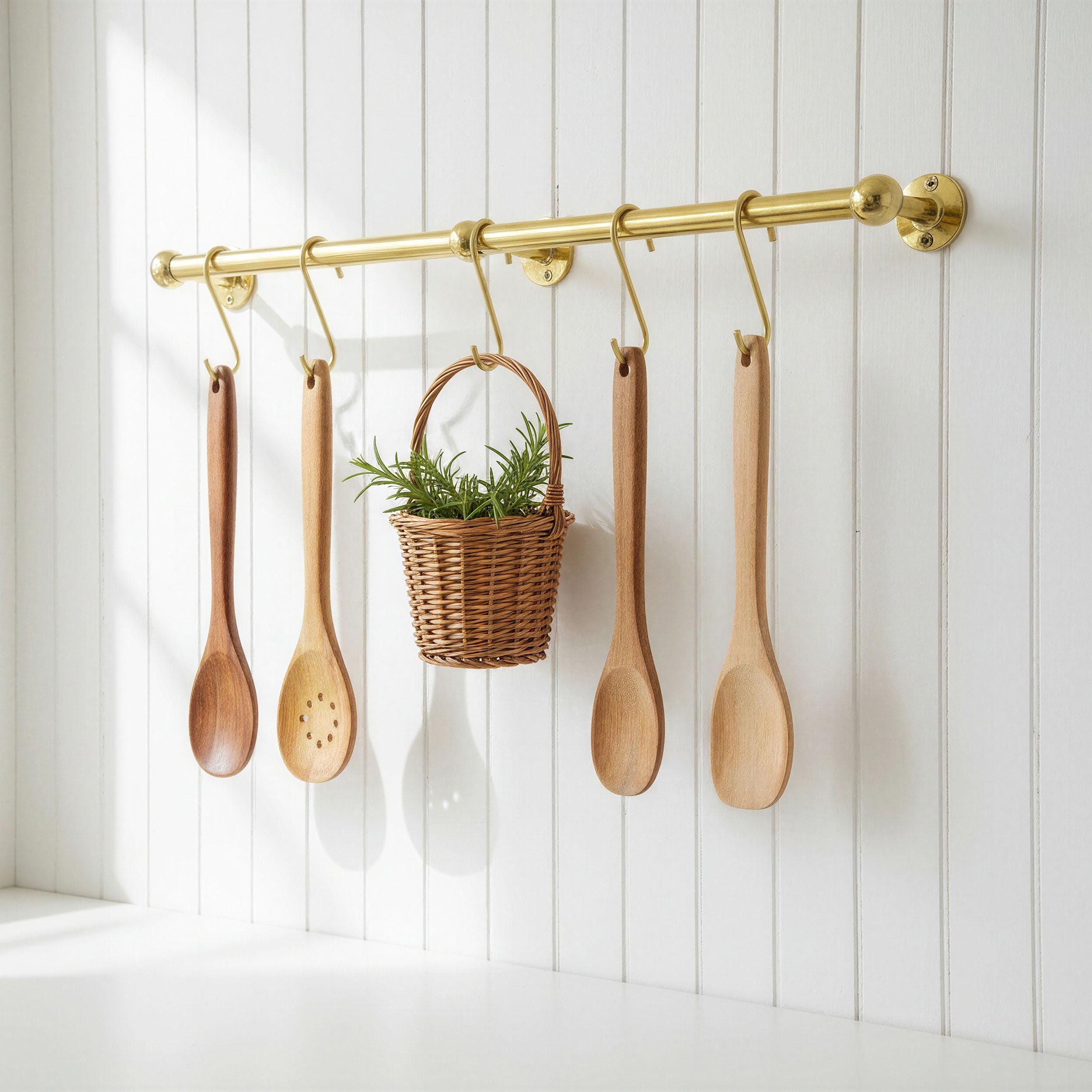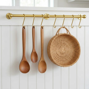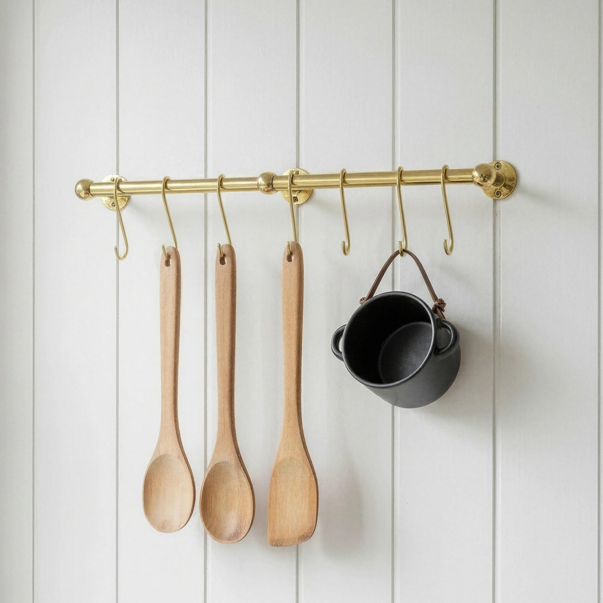 Unlacquered Brass Pot Rack with S Hooks - Handmade Pot Rail, Spoon, and Pan Holder