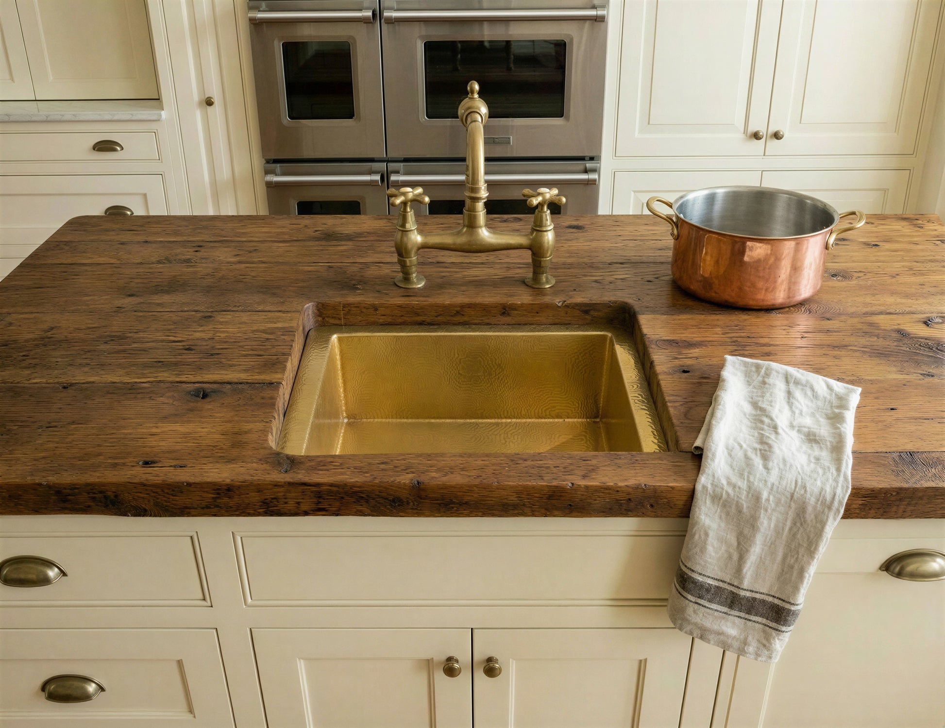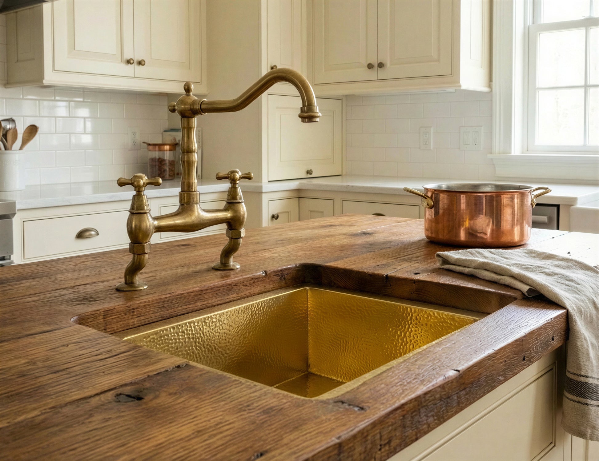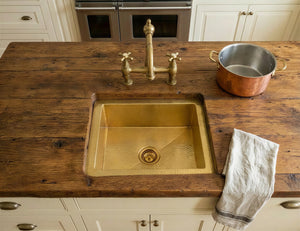 Unlacquered Brass Undermount Sink, Farmhouse Kitchen Drop in Sink Vanity, Hammered Rustic Kitchen Island Sink