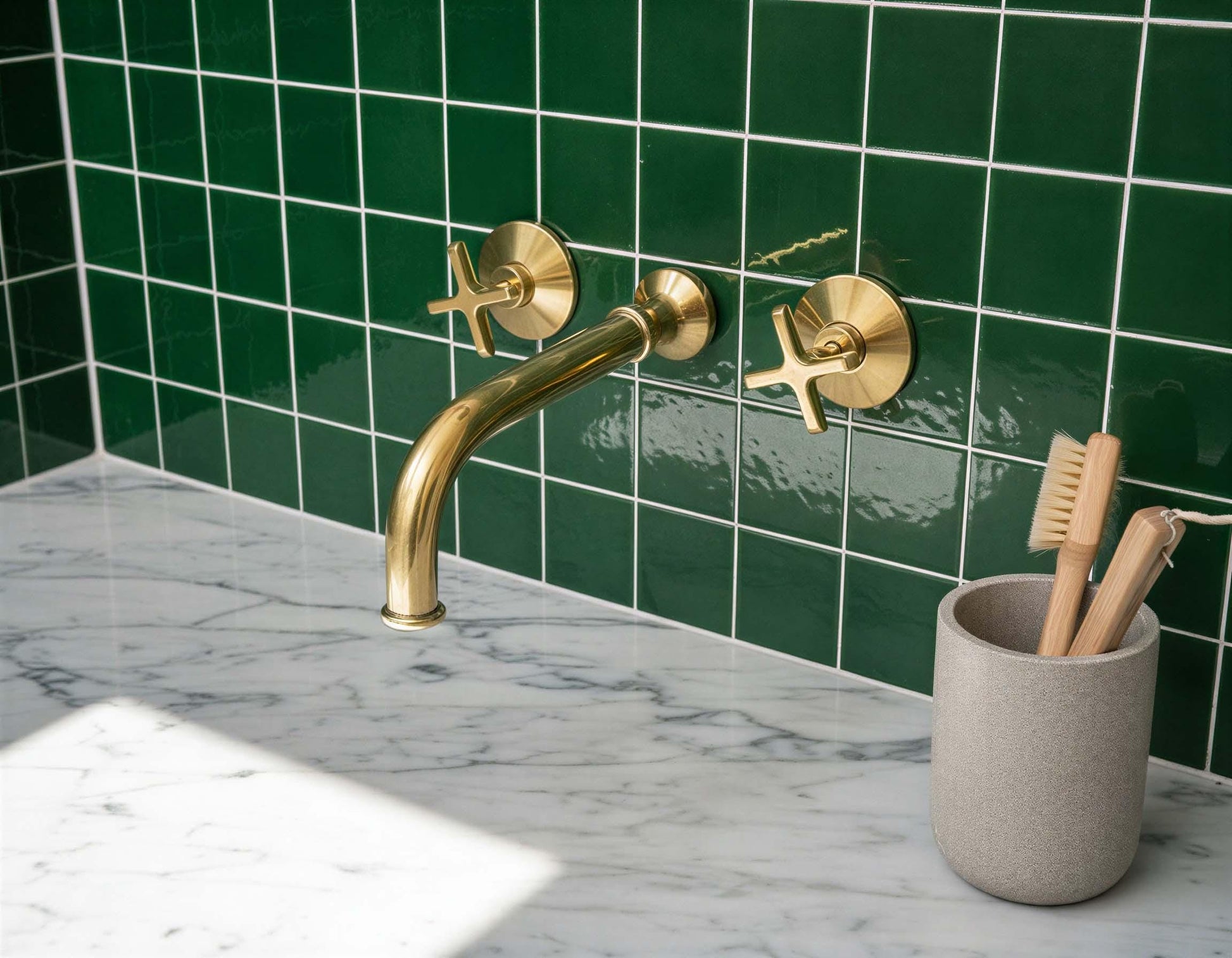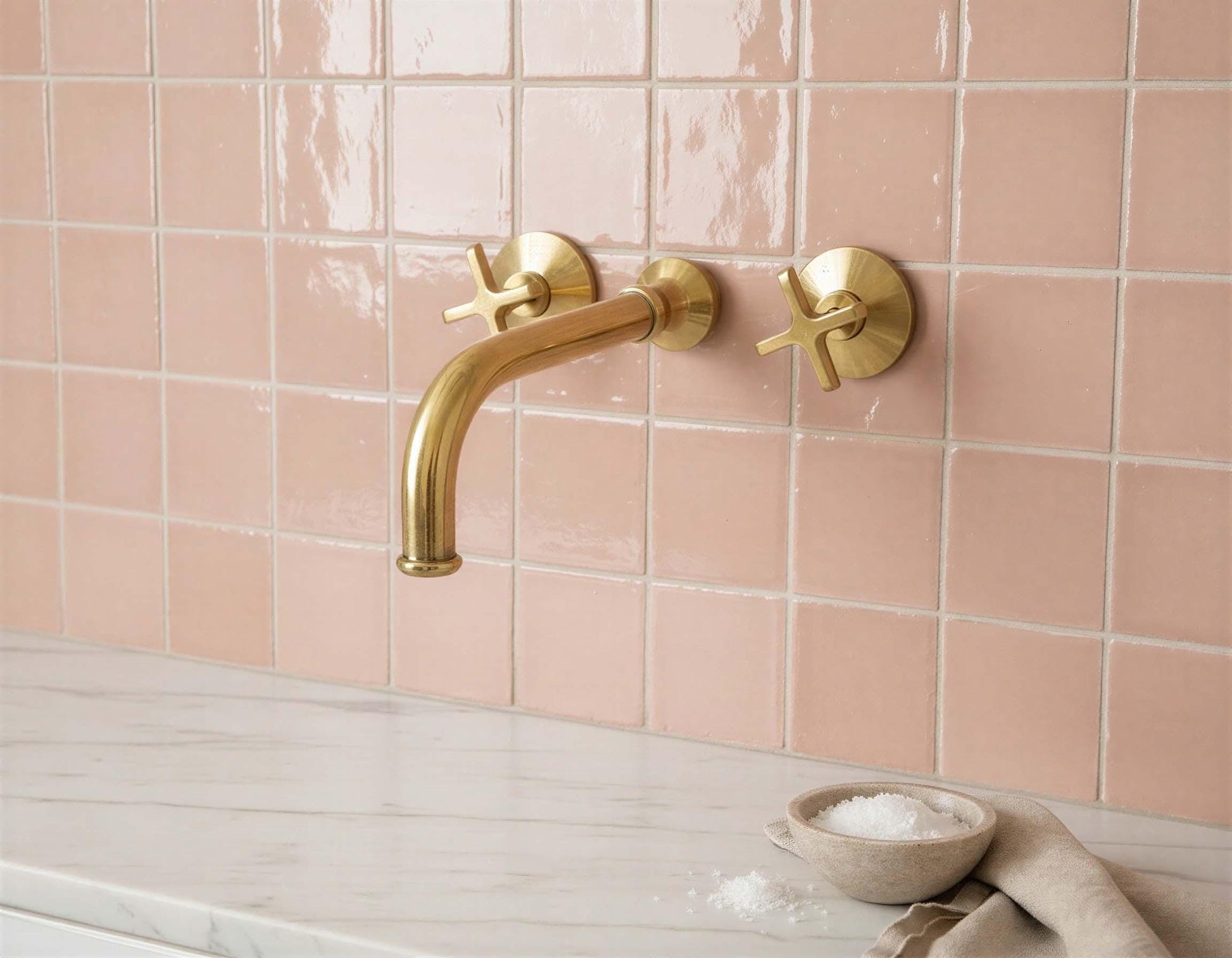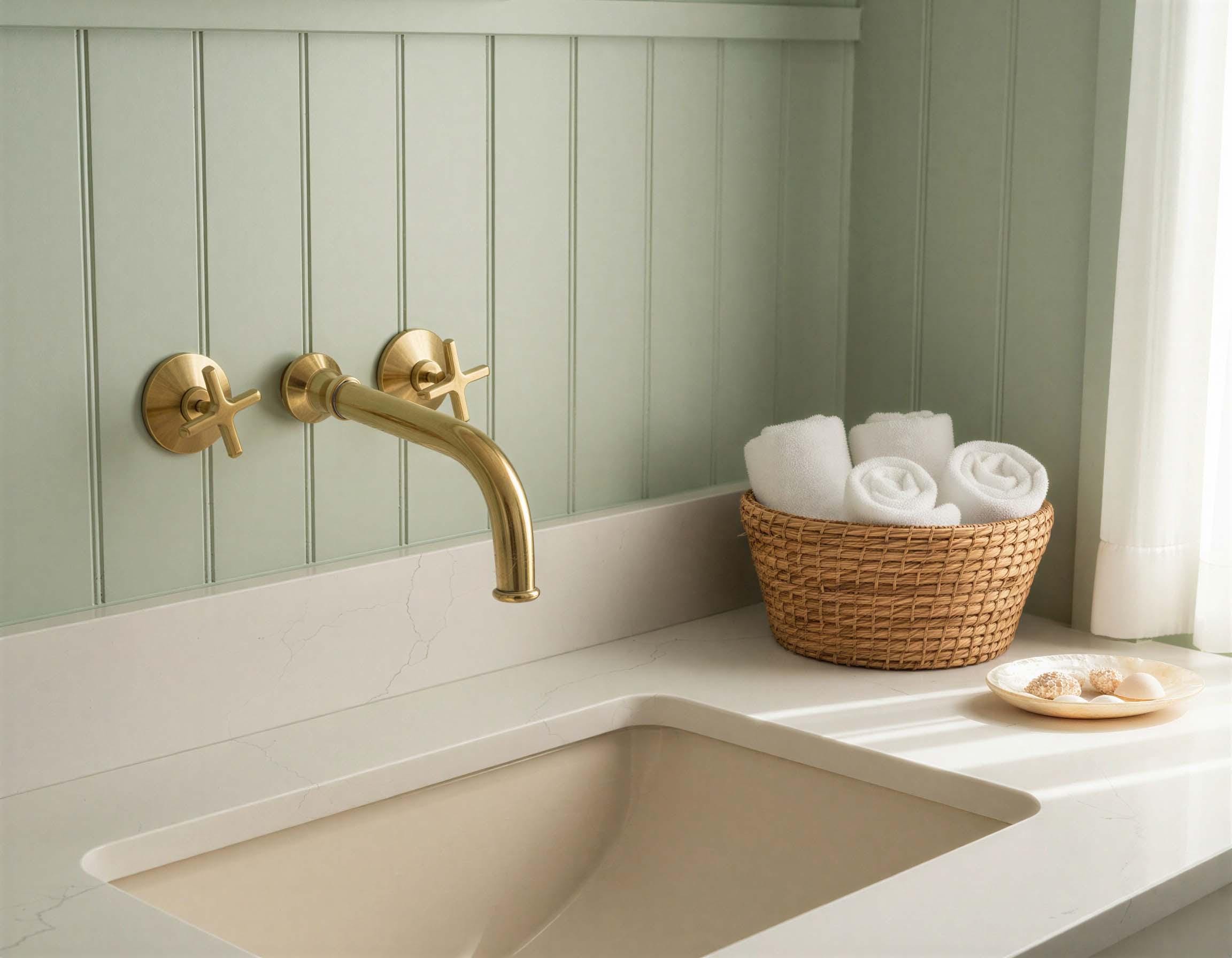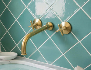 Unlacquered Brass Wall Mount Faucet - Modern Gold Bathroom Mixer