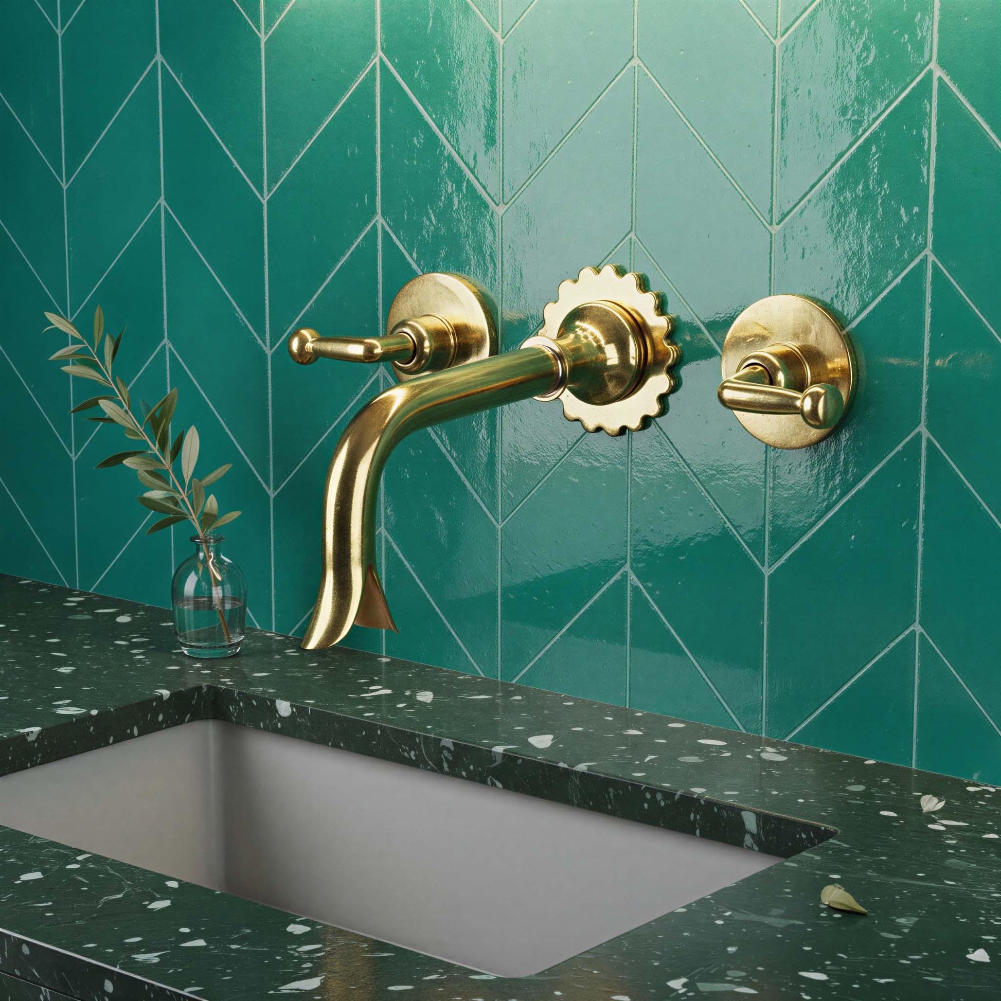 Unlacquered Wall Mount Bathroom Brass Faucet - Handmade Tap Mixer with Lever Handles Details: