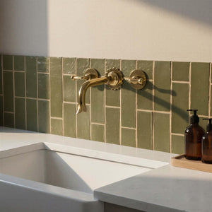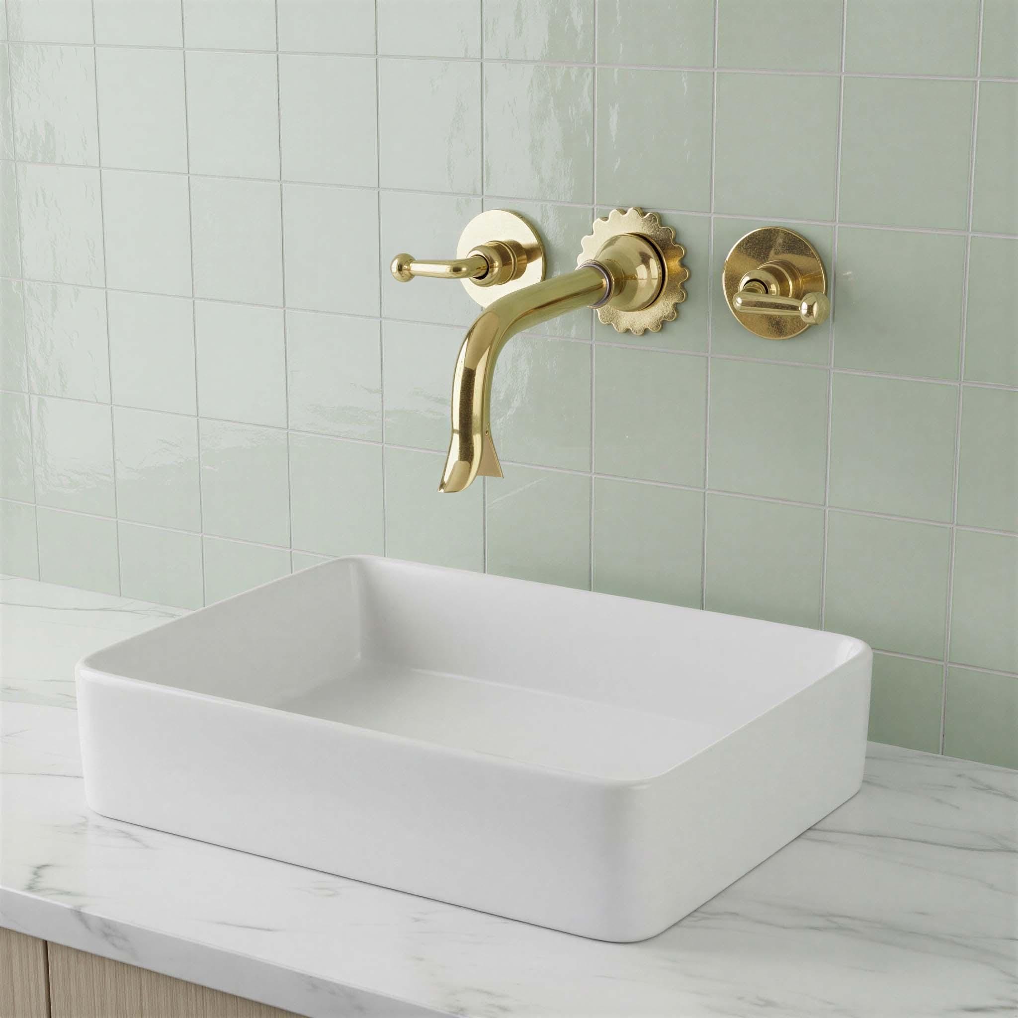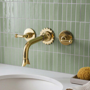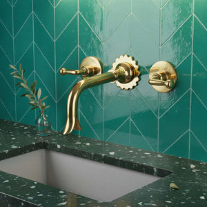 Unlacquered Wall Mount Bathroom Brass Faucet - Handmade Tap Mixer with Lever Handles
