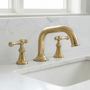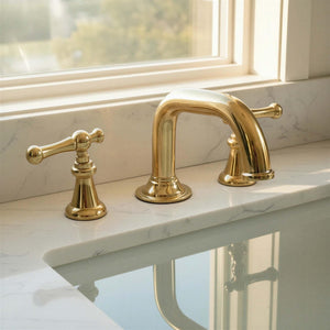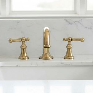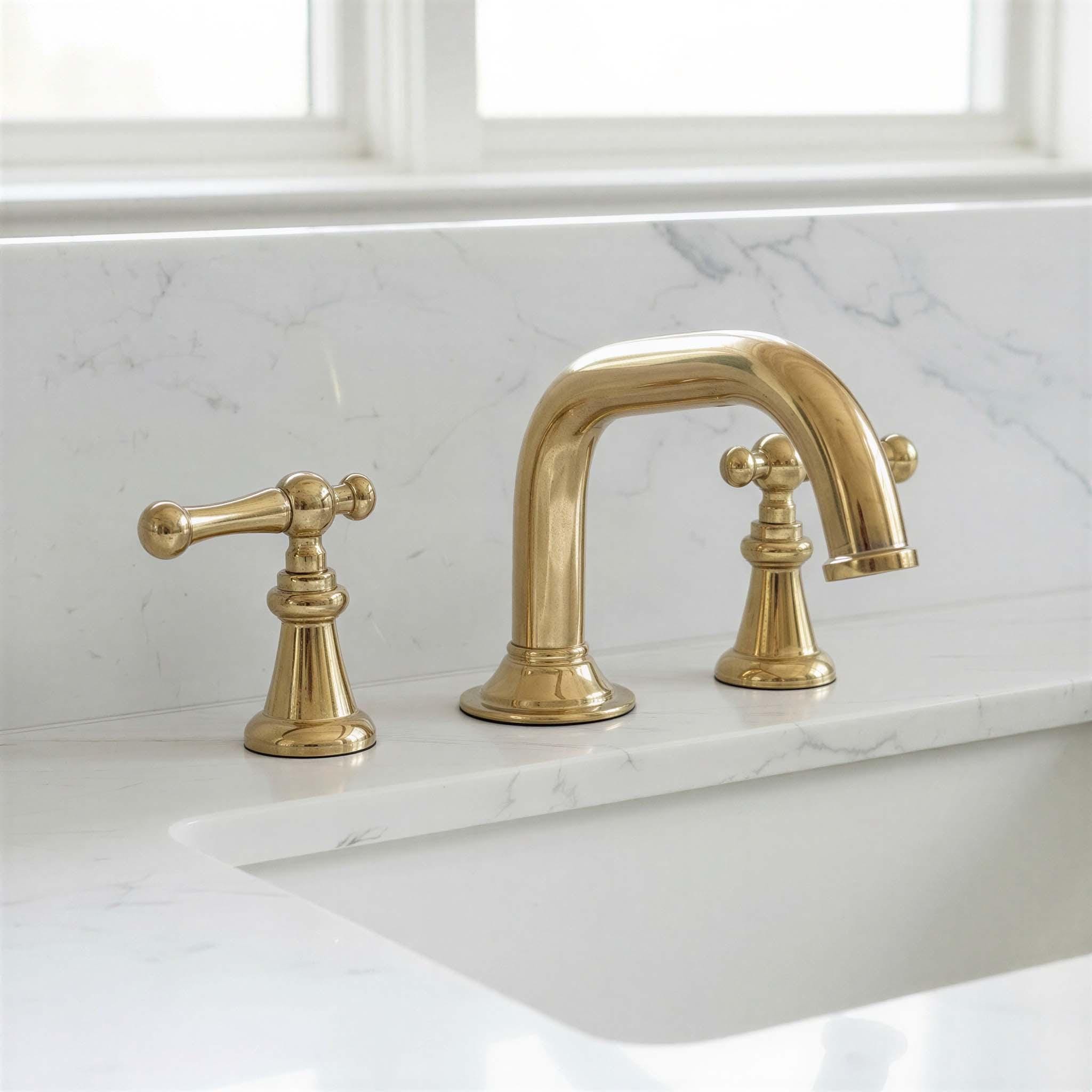 Unlacquered Widespread Brass Bathroom Sink Faucet: Solid Tap Mixer with Lever Handles Material: Brass.