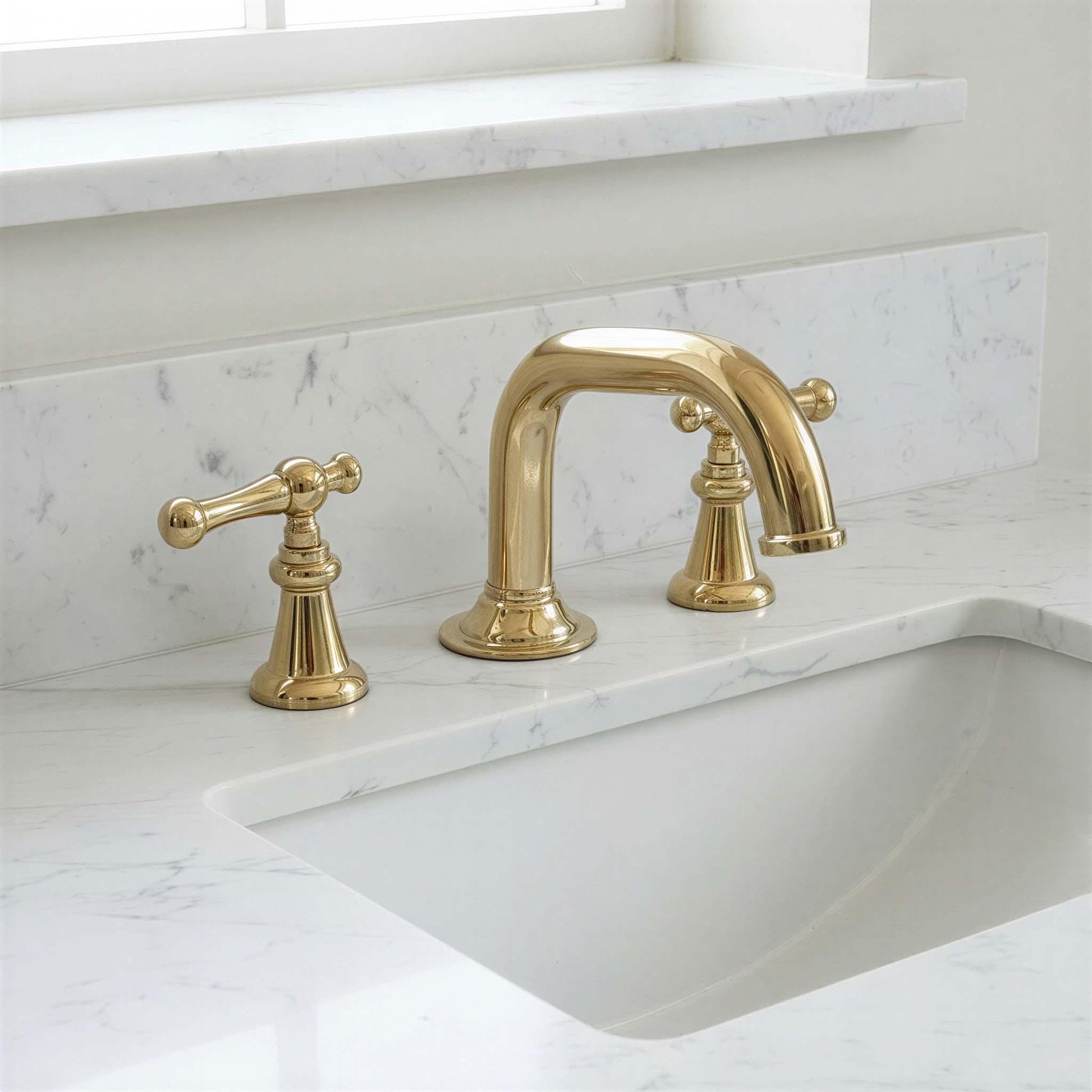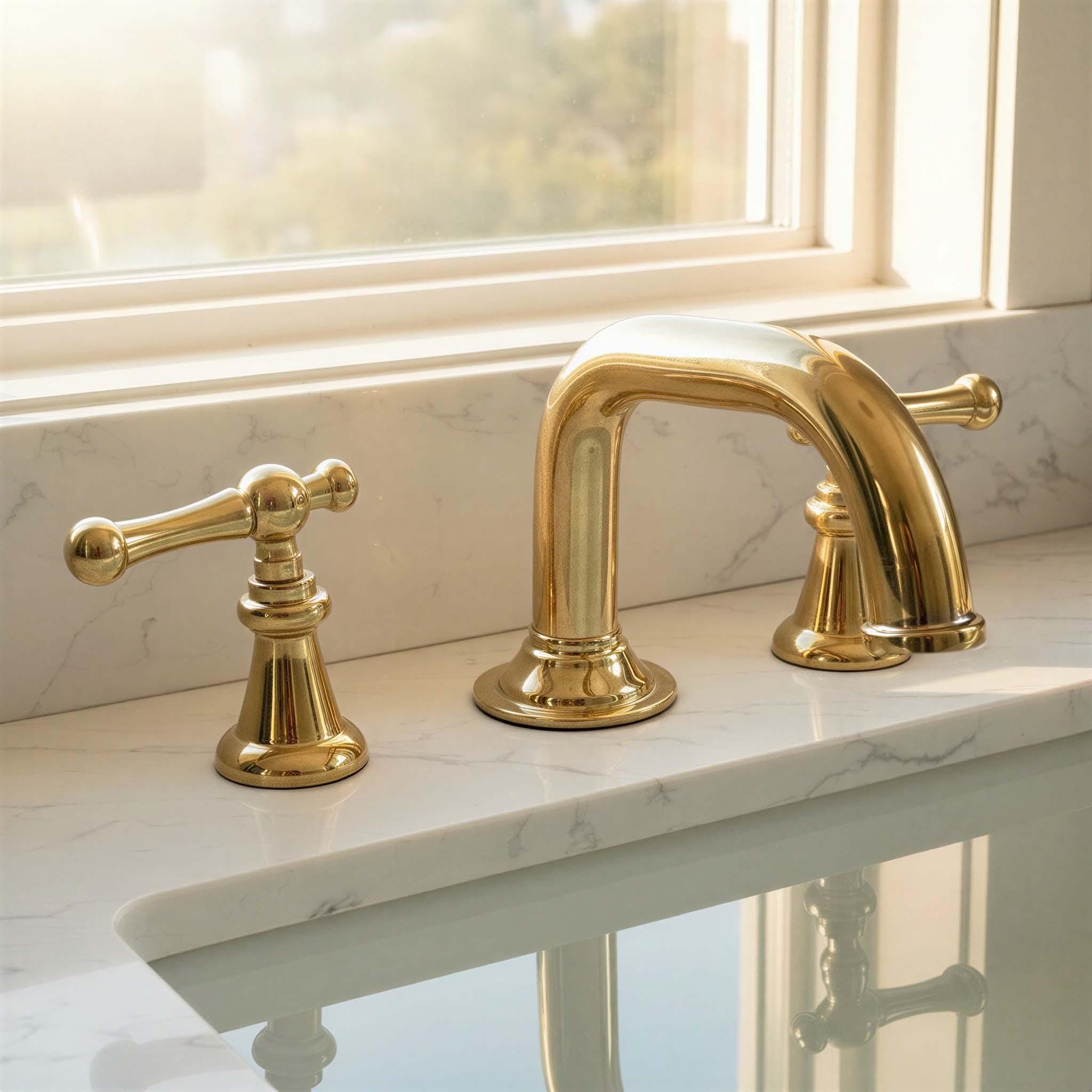 Unlacquered Widespread Brass Bathroom Sink Faucet: Solid Tap Mixer with Lever Handles